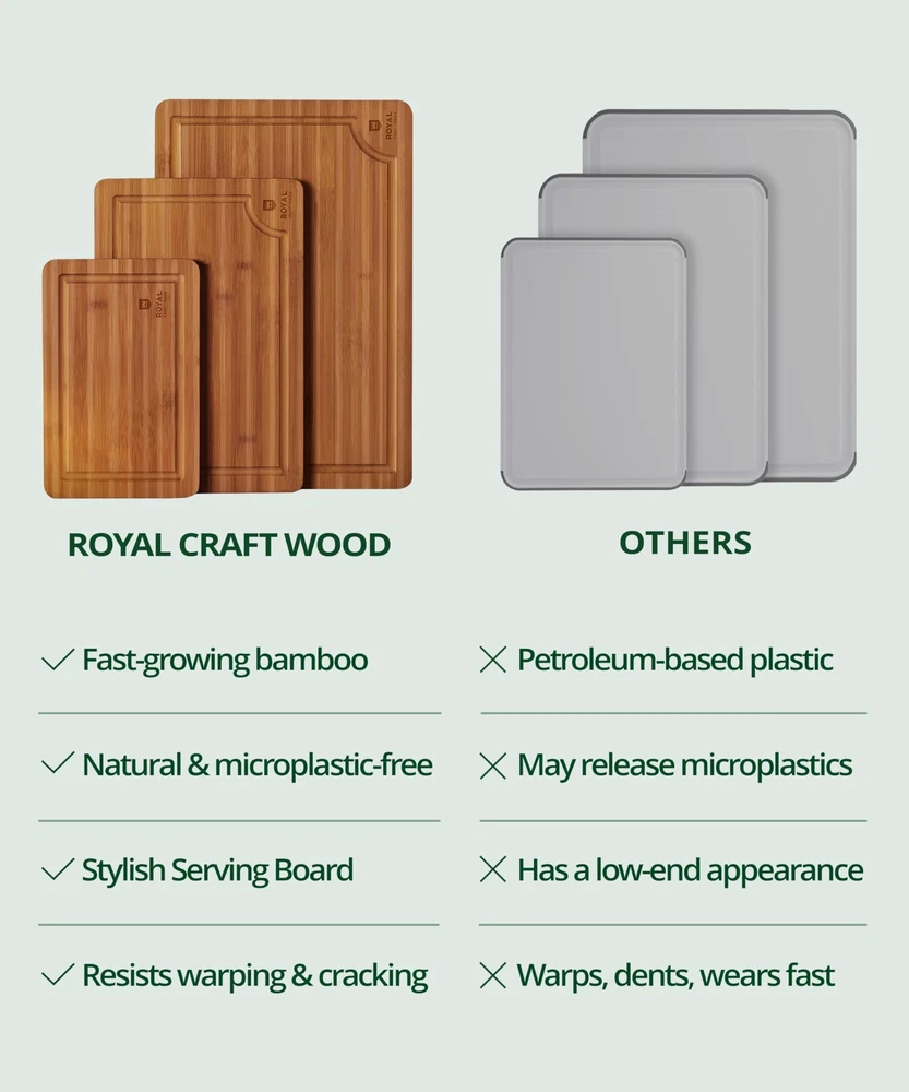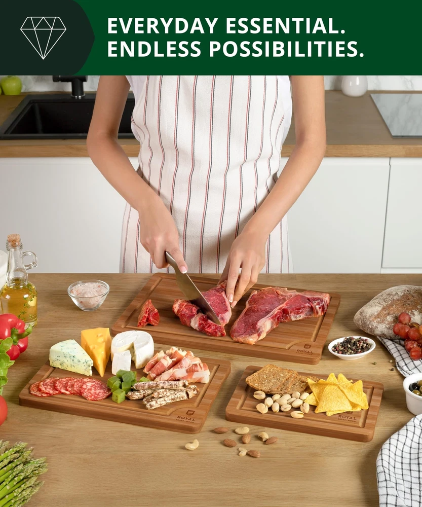 Wooden Cutting Boards for Kitchen Meal Prep & Serving - Bamboo Wood Serving Board Set with Deep Juice Groove Side Handles - Charcuterie & Chopping Butcher Block for Meat (3 Pcs) π ππππ πππ πππππ: Our bamboo cutting board set includes 9x6β, 12x8β, & 15x10β optionsβyour go-to kitchen essential for chopping, prepping, or styling a charcuterie board. πππππ-ππ ππππ πππππππ: Our wooden cutting board doubles as a chopping block, serving tray, or cheese platterβbuilt-in side handles make kitchen-to-table transfers effortless and mess-free. ππππ π-πππ π, ππππππ ππππ πππ: These cutting boards for kitchen are gentle on blades to prevent dulling, with a smooth bamboo finish and protective coating that resists scratches, stains, and bacteria. ππ ππππ πππππππ πππ ππππππ ππ: Our professional grade cutting boards feature deep juice grooves to catch liquid from meats and fruitsβkeeping your counters clean and chopping boards spill-free for easy transfers. ππππ ππ πππππ & ππππππππ: Naturally resistant to odors and stains, bamboo makes post-cooking cleanup quick and simpleβjust rinse, wipe, and you're good to go. ππππ πππ πππ π ππππ: Whether itβs a housewarming, new home celebration, or Motherβs Day, this bamboo cutting board set is a practical yet stylish gift theyβll use and appreciate every day. π°πππππ-ππππ ππππππππ: Our brand, is committed to providing our customers the best possible support and satisfaction. Thatβs why we offer a comprehensive customer support program with a 1-year warranty, a money-back guarantee, and 24/7 customer support. We understand the importance of standing behind our products and ensuring our customers are delighted Made of 100% sustainable bamboo Our wooden cutting boards are crafted from minimally refined natural Moso bamboo for a durable and sustainable everyday home piece. Water & odor-resistant surface The organic composition of our cutting board sets makes them naturally and most convenient bamboo cutting boards for kitchen use when chopping meats over fear of cross-contamination. Built-in drip grooves Strategically designed cutting board with juice groove edges for drip-catching technology, so you can dice your juicy tomatoes, season your juicy meats, and slice runny watermelon without the hassle of a puddled countertop and sticky floors. Beveled side handles Our wooden chopping board set was made for mobile use so you can swiftly pick up and carry to your desired spot. Weβve found a way to avoid the suction effect you often face with butcher block boards or other heavy duty cutting boards, so you can move and position to your convenience. Ultra resilient composition The durable bamboo structure of our kitchen cutting board set makes for a scar resistant surface and effortless maintenance. Smooth enough so your knives can glide back and forth easily, without defacing your cutting surface and keeping the aesthetic of your charcuterie boards. Double-sided reversible design Use your trays to their full potential when you take advantage of their versatile use as a chopping board, serving platter, charcuterie board cheese board tray, and more! SHIPPING Domestic Buyers - We have confidence in our products, but if you are not fully satisfied please contact us within 30 days of purchase and you will get full refund. - We ship within 3 business days of payment, usually sooner - We offer FREE shipping on all orders! - We only ship to the lower 48 states, no APO/FPO addresses or PO Boxes allowed International buyers β please note: Import duties, taxes, and charges aren't included in the item price or postage cost. These charges are the buyer's responsibility. - Please check with your country's customs office to determine what these additional costs will be prior to bidding or buying. * Order Cancellation Policy ** You can return a product for up to 30 days from the date you purchased it. 1. The seller reserves the right to cancel the special case only due to eBay cancellation fee. 2. The decision of seller is the final. 3. The seller will respond to the cancellation request within 2 business days. Please wait for the result of cancellation. 4. In case the cancellation is not completed by some reasons, the buyer can follow the options below to get the refund. 4.1 The buyer can reject the item when it arrives. 4.2 The buyer can send the item back to the seller within 30 days If the buyer receives item (USA Shipment ONLY). The seller will provide the FREE return label to the buyer when the buyer opens " Return Item" case on eBay by using the reason as "Change my mind" ONLY. 5. When buyer has placed the order. The order will be processed and completed by automatic warehouse system within 5 minutes. In case that buyer sends the cancellation request after 5 minutes of placing the order, the request will be rejected. **Sending direct message to cancel the order is not allowed for every case.* Return Policy For the return case - If buyer would like to return the items for refund or replacement, please CONTACT SELLER to receive the free return label from seller. The refund or replacement will be processed with the tracking number of return label which is provided by seller only. The other ways of return which are not approved by seller will not be processed for the refund or replacement.