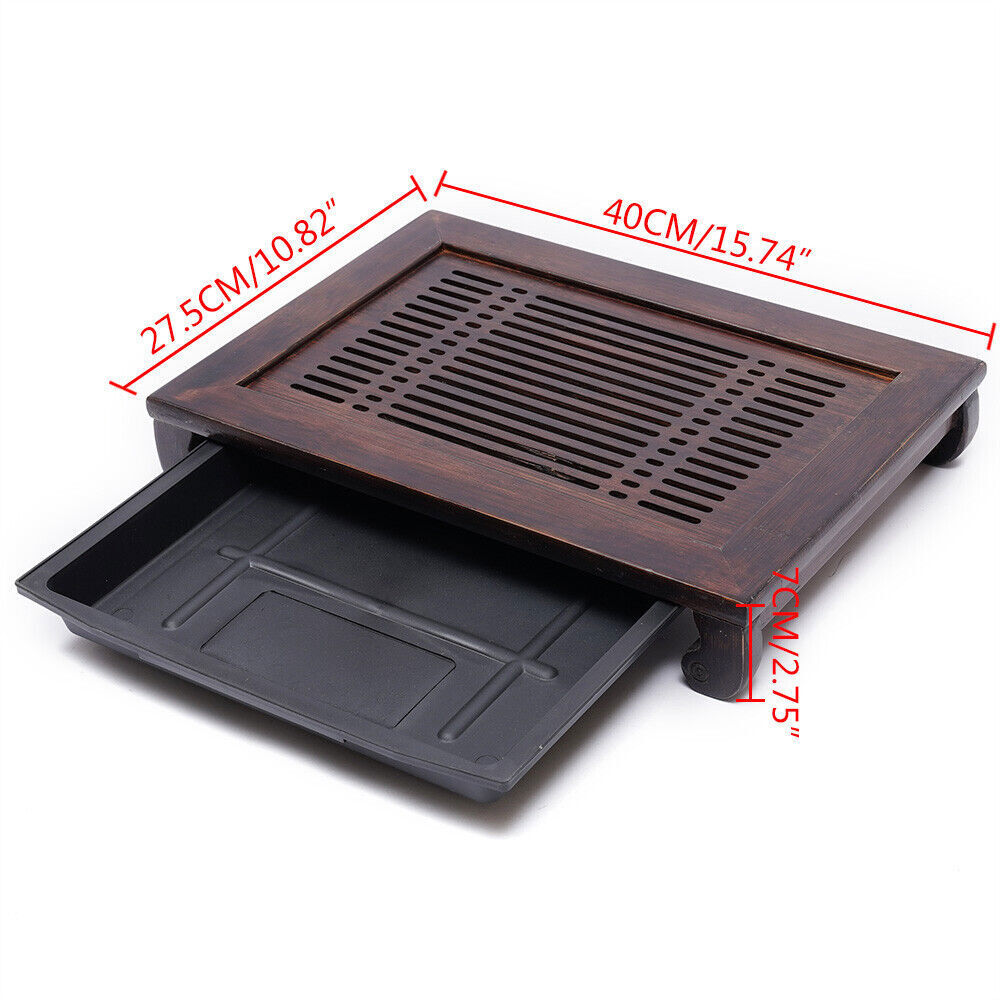 pecifications: Material: Bamboo Color: Walnut Shape: Rectangle Capacity: 1000ml Size: As Shown Features: 1. High-Quality Bamboo Materials, Environmentally Friendly And Healthy, Safe To Use. 2. The Plastic Chassis Can Store Water With a Large Capacity, Which Can Meet The Needs Of Making Tea About 5 Times, And Can Store About 1000ml Of Water. 3. Grid Bar Design, The Disk Surface Is Not Easy To Accumulate Water, And It Drains In One Second. Packing Including: 1*Drawer Tea Tray Bamboo Wood Tea Tray-Drainage Water Storage Tea Board Kung Fu Tea Tray NEW Welcome Luxury Natural Hard Bamboo Kung Fu Gongfu Tea Tray Serving Table Tea Plate New Description : Kung Fu Gongfu Tea Table Serving Tray Luxury Natural Heavy Bamboo Tea Tray Specifications: Material: Bamboo Color: Walnut Shape: Rectangle Capacity: 1000ml Weights&Dimensions: Size: 40cm*27.5cm*7cm Weight2.9kg Features&Highlights 1. High-quality Bamboo Materials, Environmentally Friendly and Healthy, Safe to Use. 2. the Plastic Chassis Can Store Water with a Large Capacity, Which Can Meet the Needs of Making Tea About 5 Times, and Can Store About 1000ml of Water. 3. Grid bar Design, the Disk Surface Is Not Easy to Accumulate Water, and It Drains in One Second. What's Included? 1*Drawer Tea Tray Payment Delivery details Terms of sales About us Contact us Payment We accept ebay payment 。 Fees such as import duties, taxes are not included in the item price or shipping costs. These charges are the buyer's responsibility. Delivery details Shipping: 2-9 working days to: USA Terms of sales We maintain high standards of excellence and strive for hundred percent customer satisfaction. Feedback is very important to us. We hope that you contact us immediately before you give neutral or negative feedback, so that we can address your concerns. It is impossible to address issues if we do not know about them! About us Your satis faction is our ultimate goal. We work hard to earn your trust and future business. Our certified technicians have tested each item before shipping. The unit comes with 1 year limited warranty on all manufacturing defects. a) If you receive a defective item, you may return it or ask for a discount. Please contact us within 14 days after you receive the package. b) What you returned must be intact and in its original packaging as re? u. Customer is responsible for shipping costs of the returned item. c) We will cover the cost of shipping back t with the shipping rate indicated in the registration page. We will send you a new unit or refund the full payment you paid. Thank you. Contact us Business Hour Business Hour: Monday To Friday: 8:30 AM to 5:00 PM (Beijing China time) Due to time zones, our reply to your questions may not be immediately. But within above working time, we will reply your email within 24 hours. If it's non-workdays, please kindly be patient and wait till Monday. Please contact us with ebay message. Please feel free to contact us if you have any questions. Monday To Friday: 8:30 AM to 5:00 PM (Beijing China time) Due to time zones, our reply to your questions may not be immediately. But within above working time, we will reply your email within 24 hours. If it's non-workdays, please kindly be patient and wait till Monday. Please contact us with ebay message. Please feel free to contact us if you have any questions.