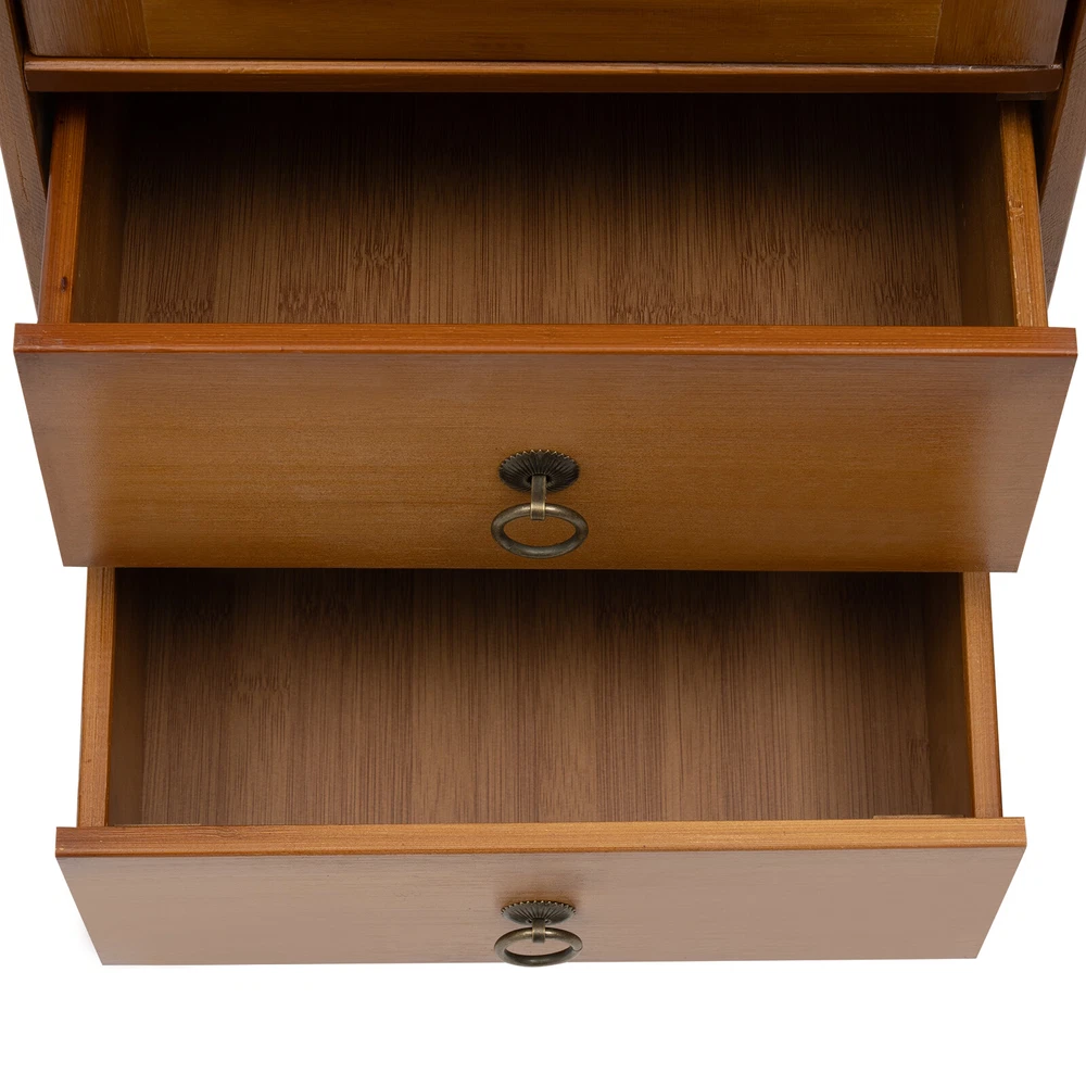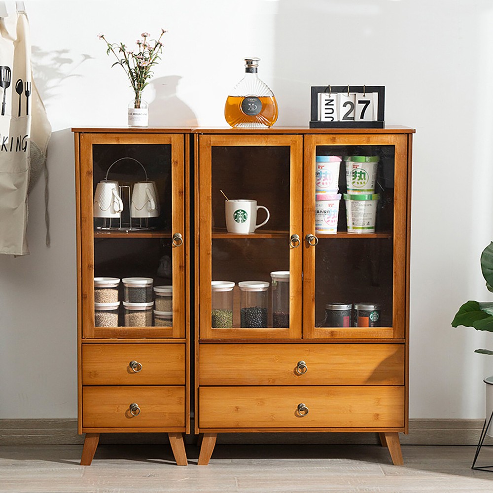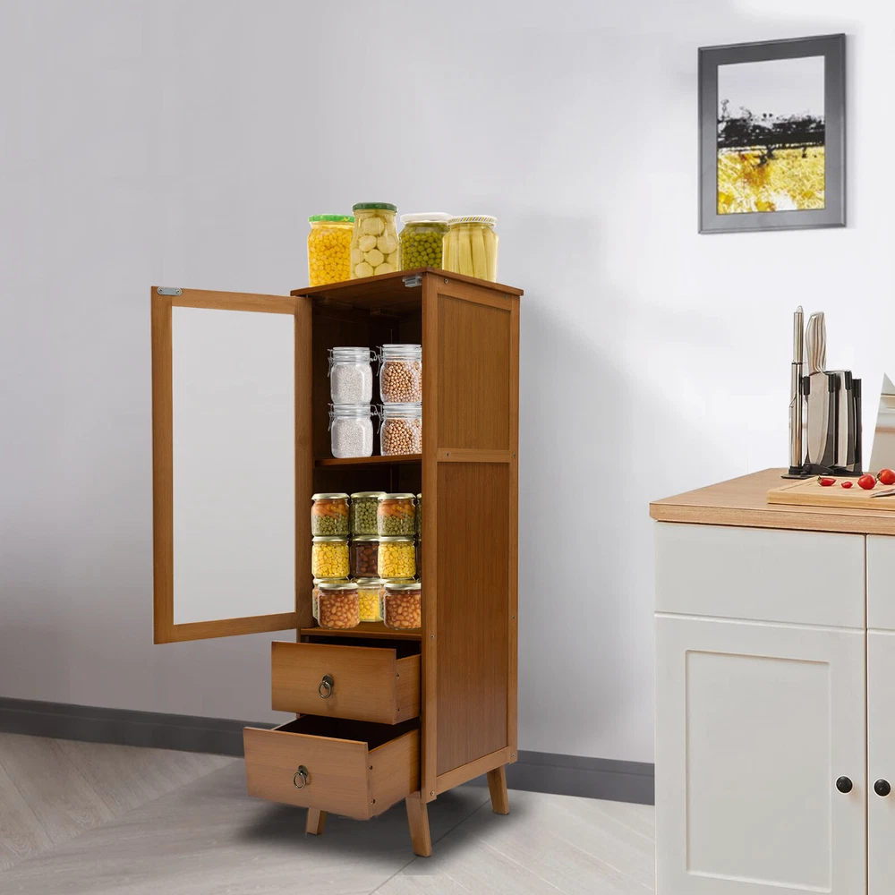 Package Included 1* Sideboard Cabinet All Accessories for Installation Bamboo Wooden Floor Cabinet, Side Storage Organizer, Kitchen Dining Room Description~ Description Without the need for too many items, a person, a book, a cup of coffee, and a sideboard cabinet can also make people feel free and relaxed in the afternoon sunshine. With a single cabinet door and two-drawer design, this cabinet can organize your items in order, making you experience a convenient life. It can adapt to any home style, adding elegance to your room. The four raised support legs provide strong support for the product while also making it easier to clean. Key Features High-quality Material: Made of high-quality bamboo, medium fiber board, acrylic, and hardware, together with a painting surface treatment, this product has high wear, rust, and impact resistance , thus having a long service life. Multiple Layout: The one-door design with 2 inner tiers(11.4 inches tier spacing), two drawers, and the open-top platform can provide you with ample storage space to store your books, ornaments, potted plants, etc., meeting your various storage needs. High Stability: The sturdy structure of the rectangular body and the 4 legs at the bottom provide stability and durability for this product. Each tier can easily withstand about 11.02-17.64 lbs of items under even force. Generous Appearance: The brown color tone, rectangular frame, and natural bamboo textures give this product a concise and generous appearance, adding refinement to your room and bringing you a cozy and pleasing life experience. Moreover, the new Chinese style gives you a sense of tranquility, peace, and relaxation. Considerate Design: The design of acrylic doors and drawers can protect your products from light exposure, temperature, dirt, and dust so that they can be kept clean and tidy. The pull rings allow to you to close and open the door and drawers conveniently and easily. Simple Installation: The simple structure, complete installation parts, and pre-drilled holes on the installation boards allow you to assemble this product easily and quickly. Protective Package : The packaging box is equipped with anti-collision foam, which can effectively avoid the loss caused by normal vibration and collision during transportation, and ensure that you can receive intact products to a certain extent. Easy to Clean: The smooth surface and simple product structure make it easy to clean with a soft cloth . Ideal Gift: This practical product will be a wonderful surprise for your family or friends, bringing delicacy and convenience to their lives. Buy with Confidence: We are honored that you have chosen our product. We have sufficient confidence in the quality of the product so that you can buy it confidently. But if you have any questions, you can contact our customer service, he will patiently answer and solve your problems. Details Raised Support Legs: Four support feet can effectively avoid moisture and make the center of gravity of the product more stable. The height of 3.9 inches can allow the sweeping robot to enter and exit freely so that the bottom space can be cleaned more thoroughly. Well-designed Door: The cabinet door with magnetic suction design is easy to close and can prevent items from falling out. In addition, the clear acrylic door can block dust and make interior items visible at a glance. Application The product can be used in the kitchen, dining room, study room, entrance , bedroom, and living room, and as a sideboard, storage cabinet, sofa side table , etc. Specification Color: Brown Style: Classic Shape: Rectangular Base Type: Legs Assembly Required: Yes Material: Bamboo, MDF, Acrylic, Hardware Process: Spray Paint ( Environmentally Friendly E1 ) Mounting Type: Floor Mount Number of Doors: 1 Number of Drawers: 2 The Max. Load of Each Tier: About 5-8kg /11.02-17.64lbs (Under Uniform Force) Each Drawer Height: 12 cm/4.7in Leg Height: 10cm/3.9in Cabinet Door Height: 58.5cm/23in Upper Tier Spacing: 29cm/11.4in Product Size: 32*29*97.5cm/12.6*11.4*38.4in Package Included 1* Sideboard Cabinet All Accessories for Installation Notes Bamboo wood products are from natural materials, inevitably there will be different textures, bamboo knots, bamboo halos, bamboo gaps, bamboo spots, and other phenomena, which will not affect the beauty and use. Please do not use corrosive cleaning agents or hard objects to clean, it is recommended to use a soft cloth to wipe. Bamboo wood products should not be placed in the sun for a long time to avoid cracking and deformation, and should not be placed in a dark and humid place for a long time to avoid mildew . Please keep accessories away from babies, children, and pets during installation. Please allow the slight color difference caused by the shooting light and the 1-3 cm error due to manual measurement, and make sure you do not mind before ordering. Payment Delivery details Terms of sales About us Contact us Payment We accept ebay payment 。 Fees such as import duties, taxes are not included in the item price or shipping costs. These charges are the buyer's responsibility. Delivery details Shipping: 2-9 working days to: USA Terms of sales We maintain high standards of excellence and strive for hundred percent customer satisfaction. Feedback is very important to us. We hope that you contact us immediately before you give neutral or negative feedback, so that we can address your concerns. It is impossible to address issues if we do not know about them! About us Your satis faction is our ultimate goal. We work hard to earn your trust and future business. Our certified technicians have tested each item before shipping. The unit comes with 1 year limited warranty on all manufacturing defects. a) If you receive a defective item, you may return it or ask for a discount. Please contact us within 14 days after you receive the package. b) What you returned must be intact and in its original packaging as re? u. Customer is respons