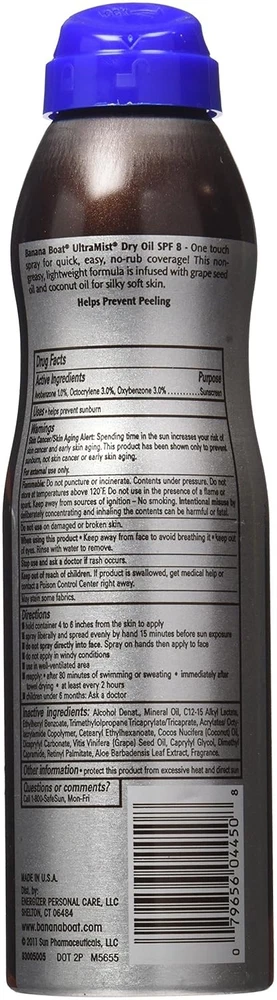 $ 9.15Banana Boat Ultra Mist Dry Oil SPF 8 Sunscreen Spray 6oz 6 Pack