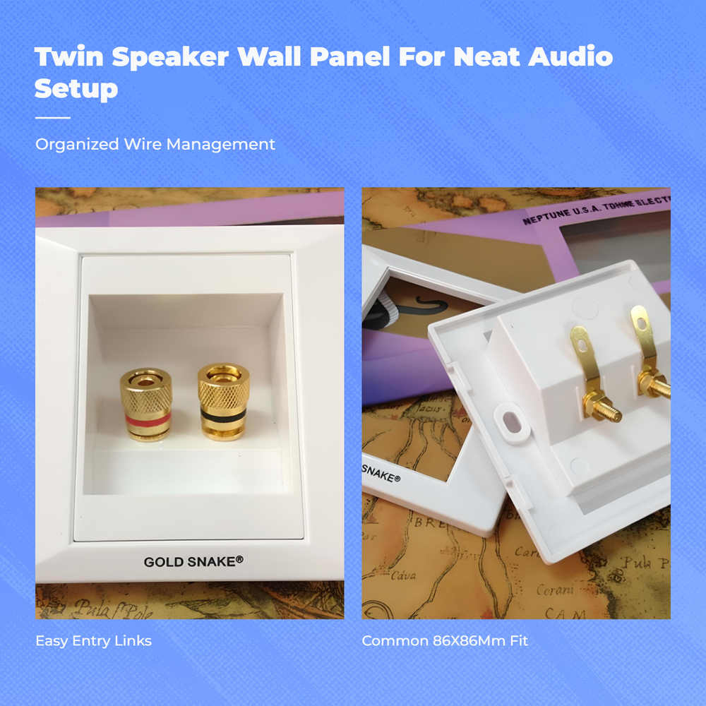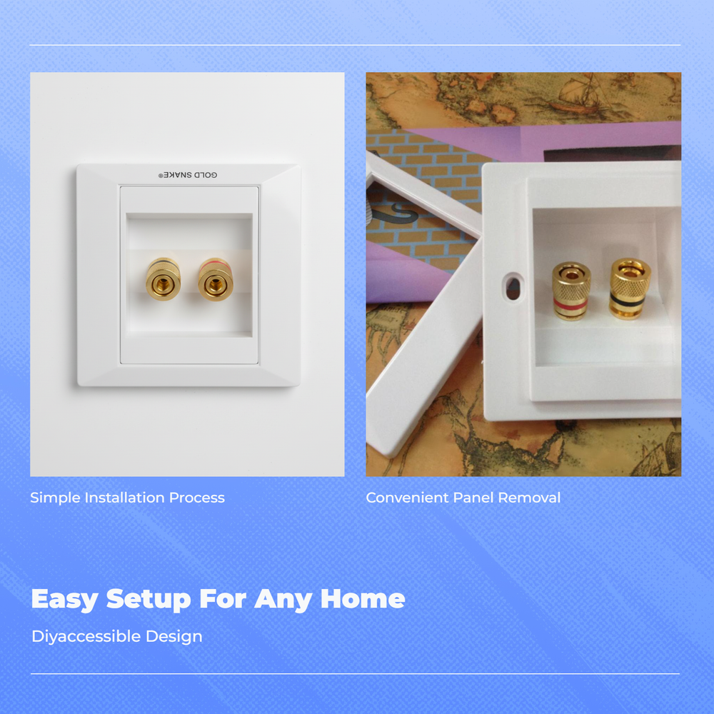 Banana Plug Wall Plate Gold-Plated Speaker Outlet White Gloss Finish