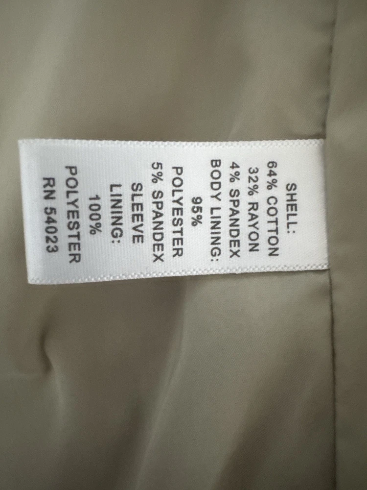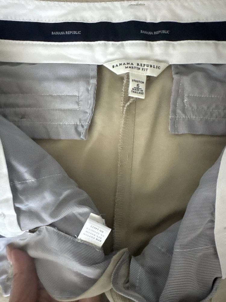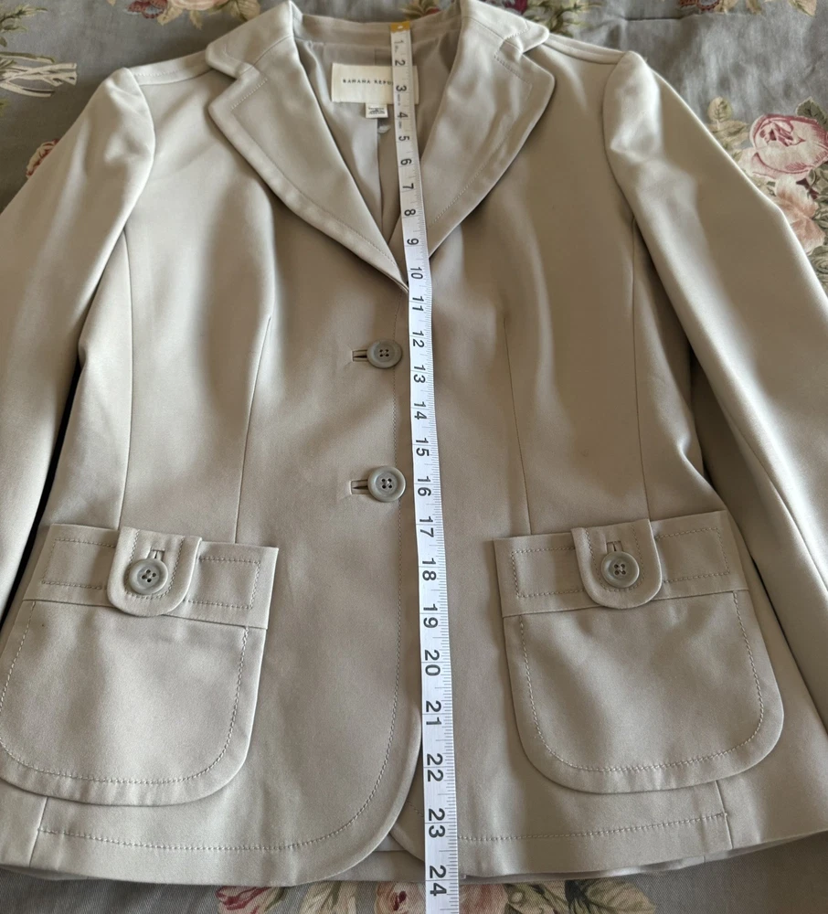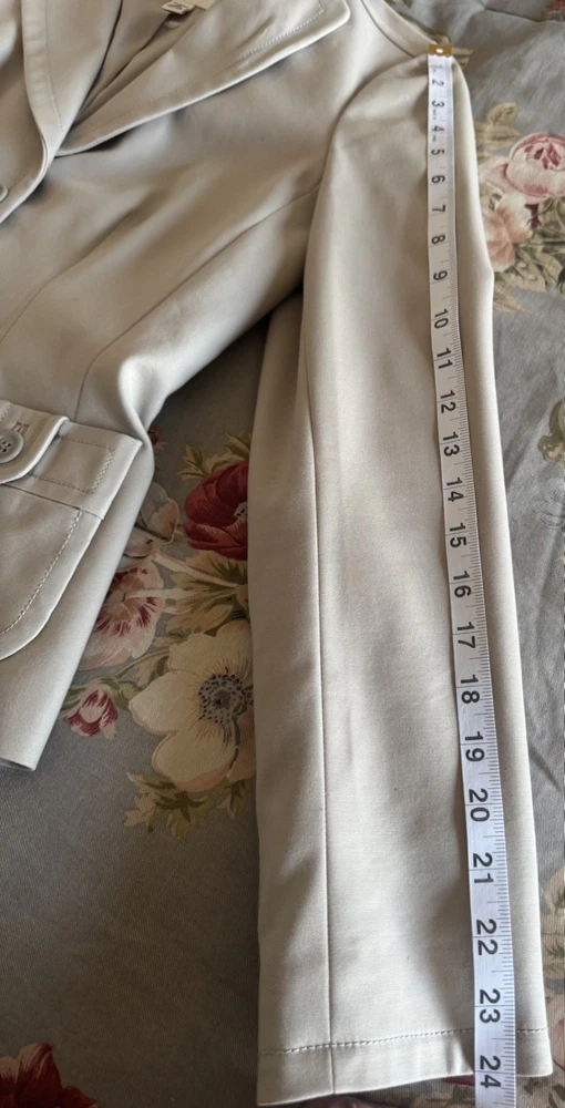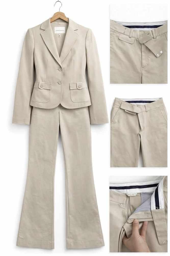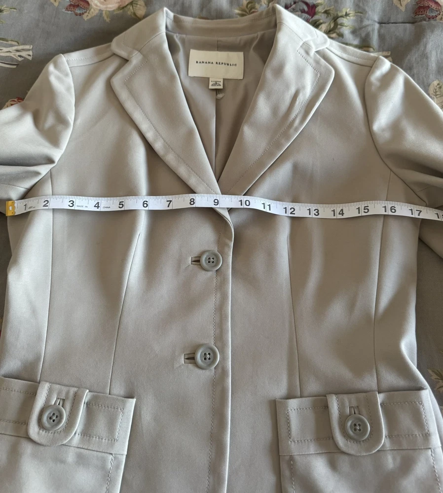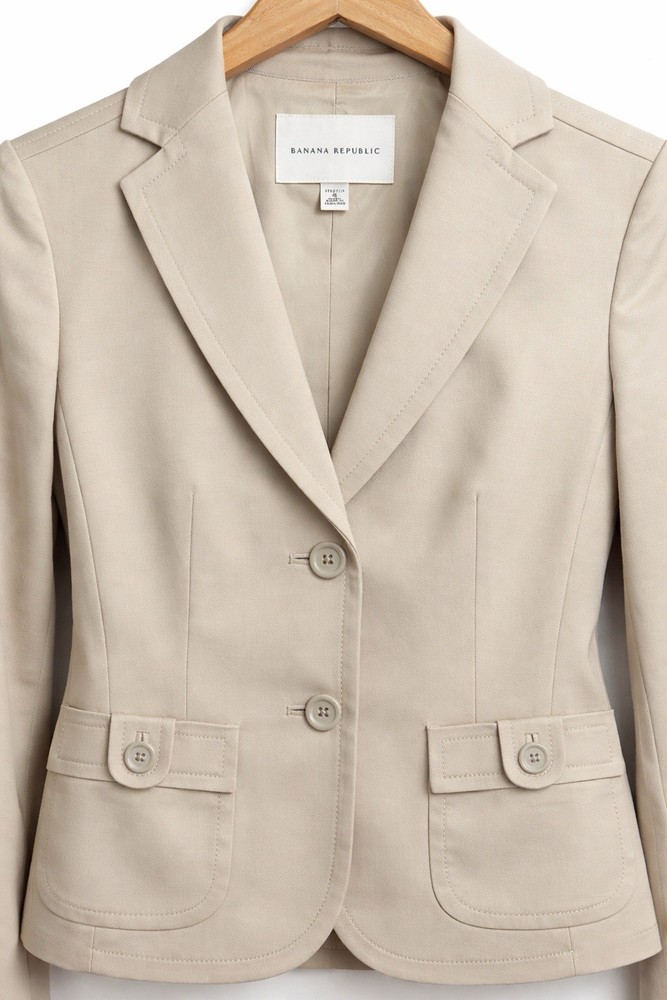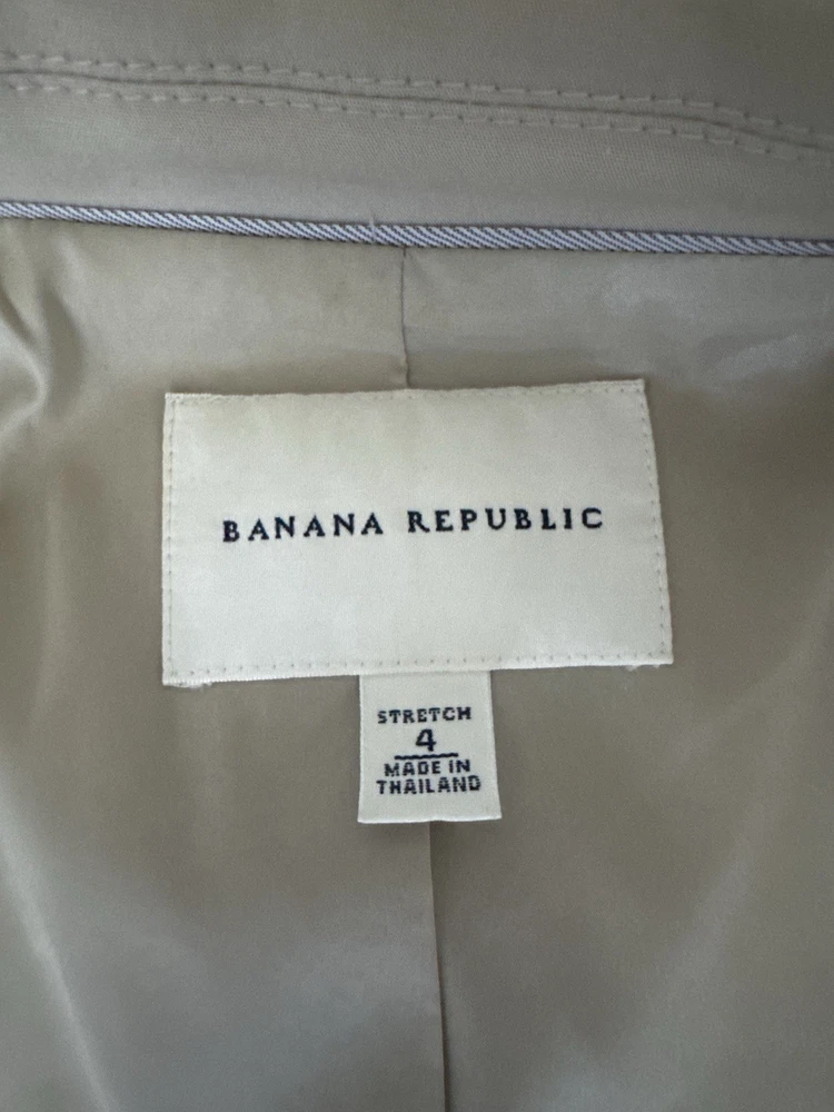 Elevate your wardrobe with this timeless and sophisticated Banana Republic tailored suit set, designed for a polished, modern look. Perfect for work, business meetings, or elegant occasions. Details: • Brand: Banana Republic • Style: Matching blazer + pants set • Color: Classic beige / neutral tone • Fit: Tailored, structured silhouette (Martin Fit pants) • Size: Jacket Size 4 / Pants Size 6 (please see measurements if added) • Closure: Button-front blazer, zip & hook closure pants • Features: • Flattering fitted blazer with structured seams • Decorative flap pockets with button accents • Back waist tab detail for a cinched look • Straight-to-flare leg trousers for elongating effect • Stretch fabric for comfort and mobility Material: • Shell: 64% Cotton, 32% Rayon, 4% Spandex • Lining: 95% Polyester, 5% Spandex Condition: • Excellent pre-owned condition • No visible stains or major flaws • Clean and well maintained Why You’ll Love It: This suit is the perfect blend of classic tailoring and modern comfort, making it a versatile staple for a capsule wardrobe. Dress it up with heels or keep it effortless chic with flats.
