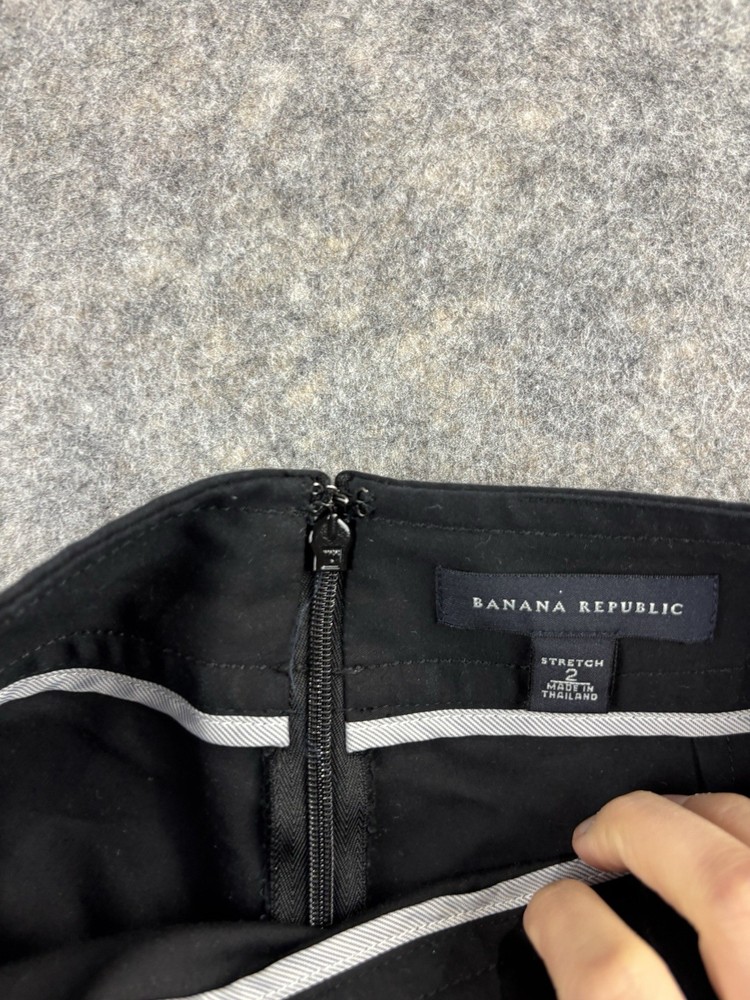 BANANA REPUBLIC Black Mini Business Skirt Pockets Size Stretch 2 Old Money Prep. Condition is Pre-owned - Good. Shipped with USPS Ground Advantage.