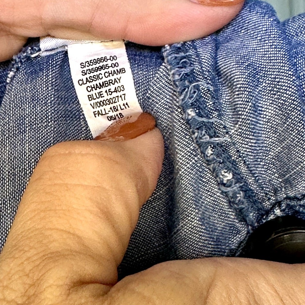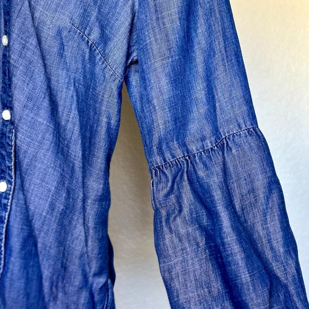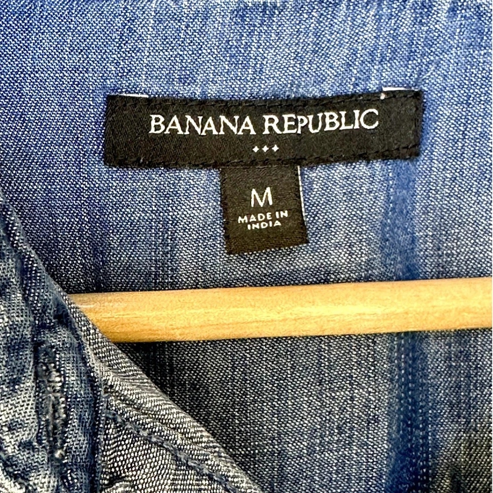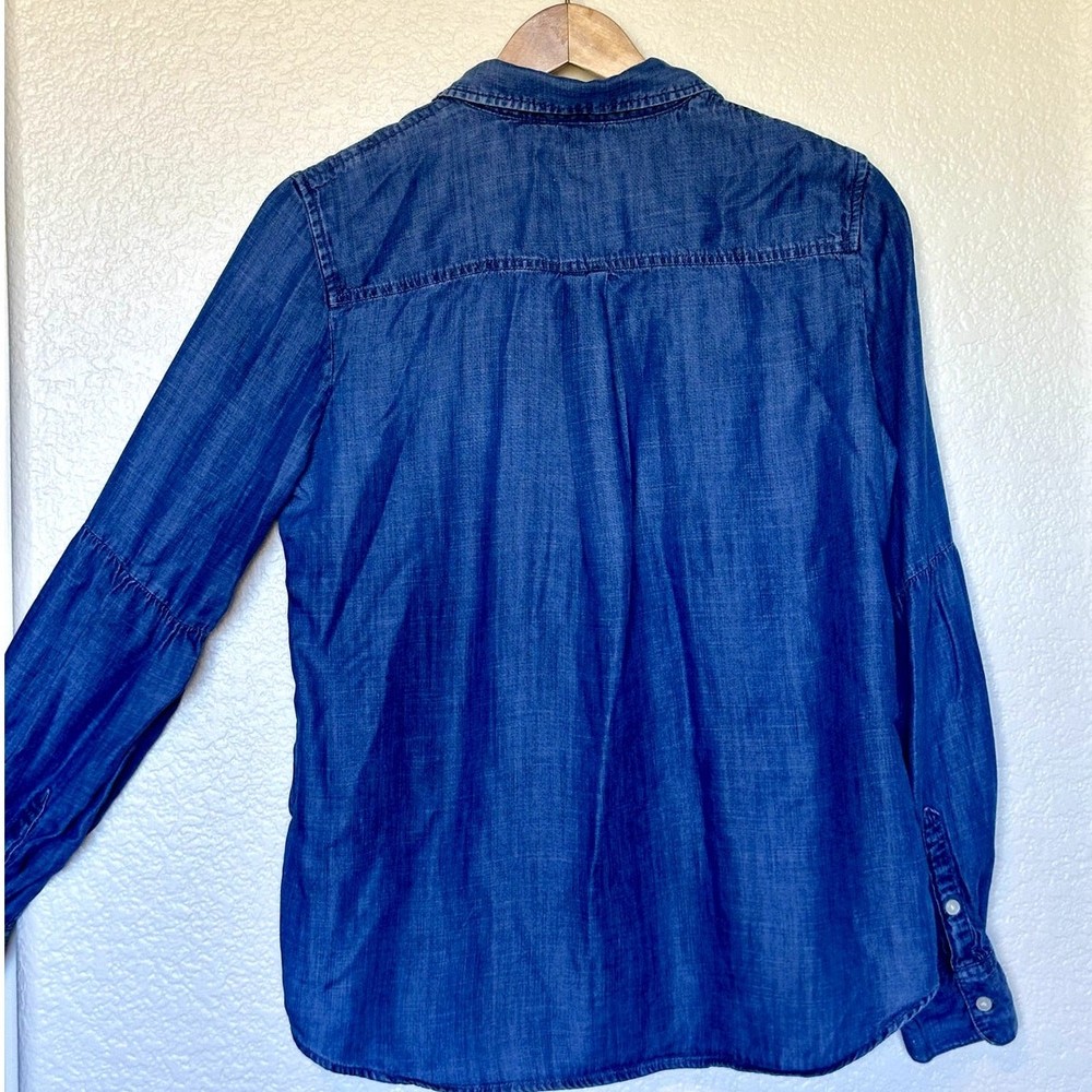 Banana Republic Women S 100% Lyocell Classic Blue Denim Chambray Button Down Top Pet to pit 20 inches shoulder to wrist 24 inches overall length 26 inches see photos for additional condition information