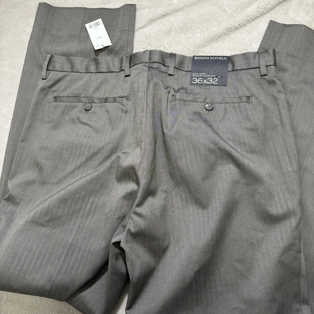 Elevate your wardrobe with these stylish and versatile Banana Republic dress pants. Perfect for any occasion, whether it be a business meeting, formal event, or a casual day out. These pants feature a slim fit design with a 36-inch waist size and a straight leg style with a 30-inch inseam. Made from a comfortable and stretchy blend of spandex and cotton, these pants are easy to care for and wrinkle-resistant. They also come equipped with slash pockets for added convenience. The flat front design and solid pattern give these pants a modern and preppy look, while the button and zipper accents add a touch of style. Whether you're heading to the office or a night out, these pants are sure to become a staple in your wardrobe.