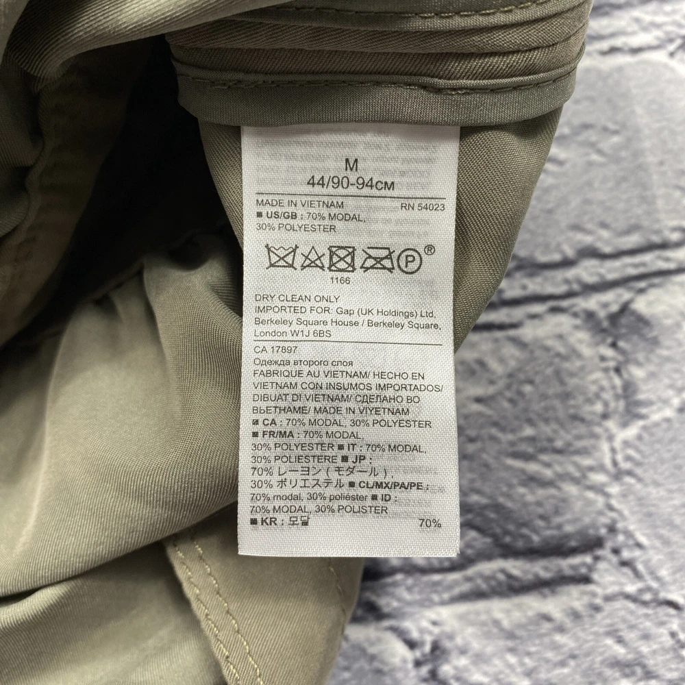 Size Type: Regular Theme: Army, Classic, Bohemian, Hippie, Chic, Career, Casual, Date Night, Military, Steampunk, Boho, Minimalist Season: Spring, Fall, Winter, Summer Type: Jacket Occasion: Casual, Travel, Workwear, Business, Party/Cocktail Size: M Department: Women Pattern: Solid Outer Shell Material: Modal Closure: Tie, Button Sleeve Length: Long Sleeve Accents: Ruffle Color: Green Features: Lightweight, Belted, Collared Style: Basic Jacket Brand: Banana Republic