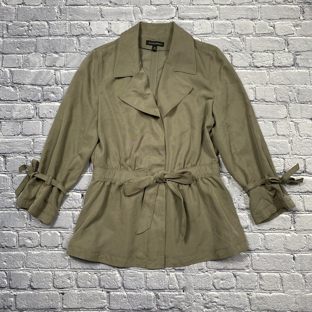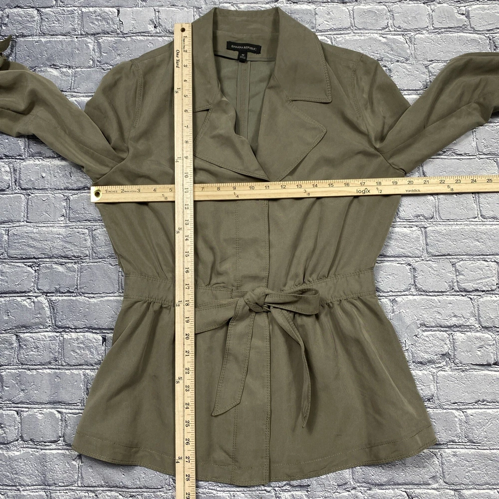 Banana Republic Jacket Womens M Olive Green Tie Waist Coquette Boho Career Flowy