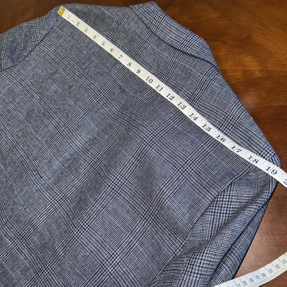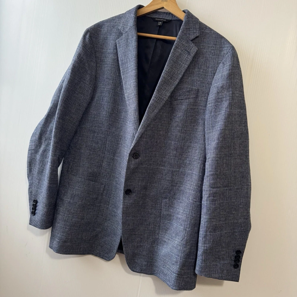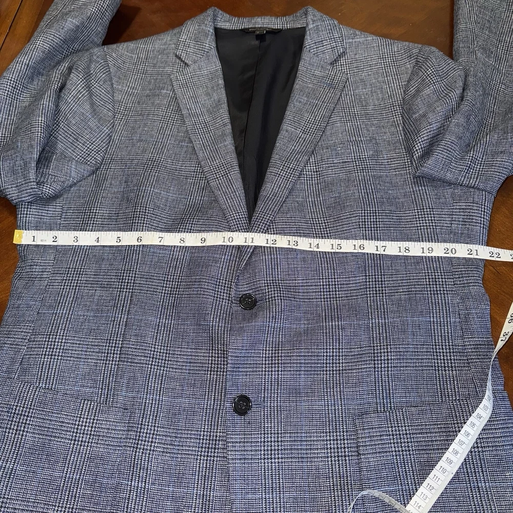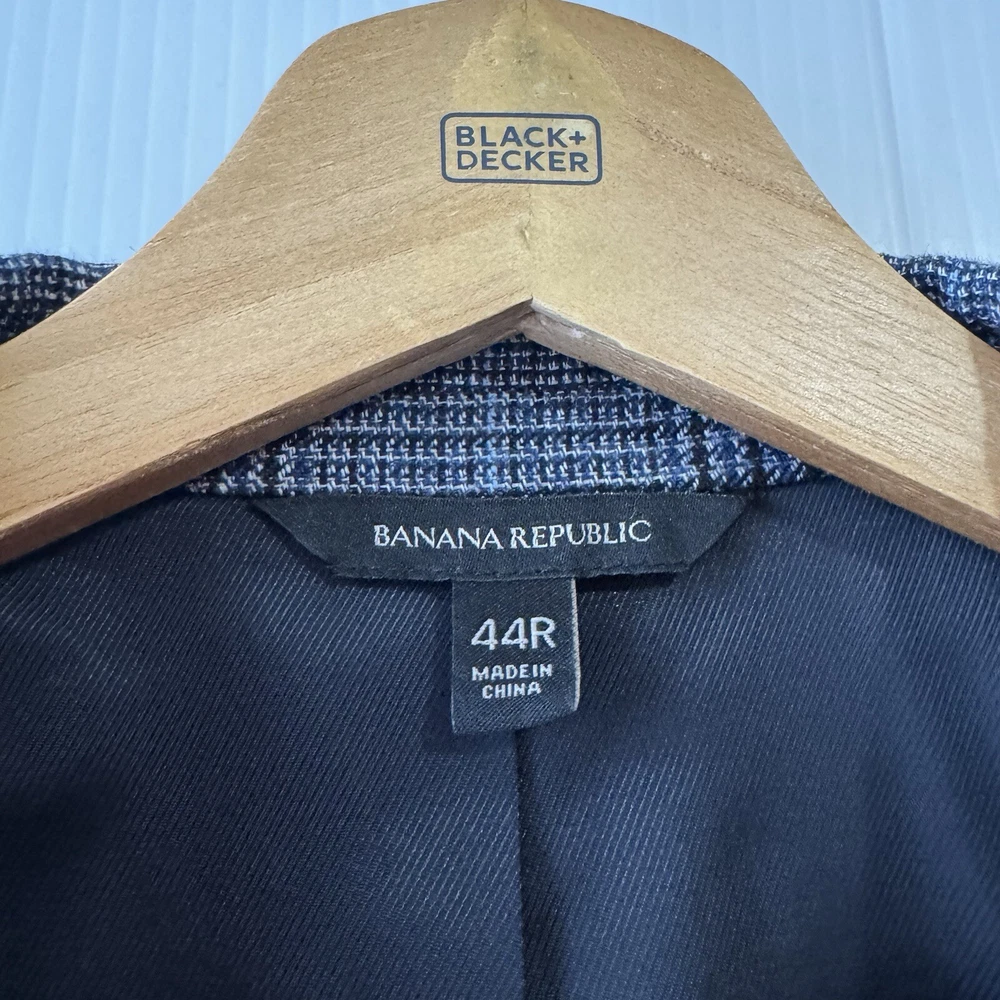 Waist Size: na Jacket Front Button Style: Two-Button Size Type: Regular Jacket Cut: Single-Breasted Number of Pieces: 1 piece Color: Blue/Gray Size: 44 Type: Blazer Season: Fall, Spring, Summer Personalization Instructions: na Vintage: No Lining Material: Acetate Features: Inner Pockets Jacket/Coat Length: Regular Jacket Lapel Style: .. Brand: Banana Republic Material: Cotton, Linen, Nylon Pattern: Look Photo Department: Men Occasion: Business, Casual, Party/Cocktail, Travel, Wedding Style: 1 piece Chest Size: Look Photo Theme: Classic, Designer Fit: Slim Fabric Type: Blend Fabric