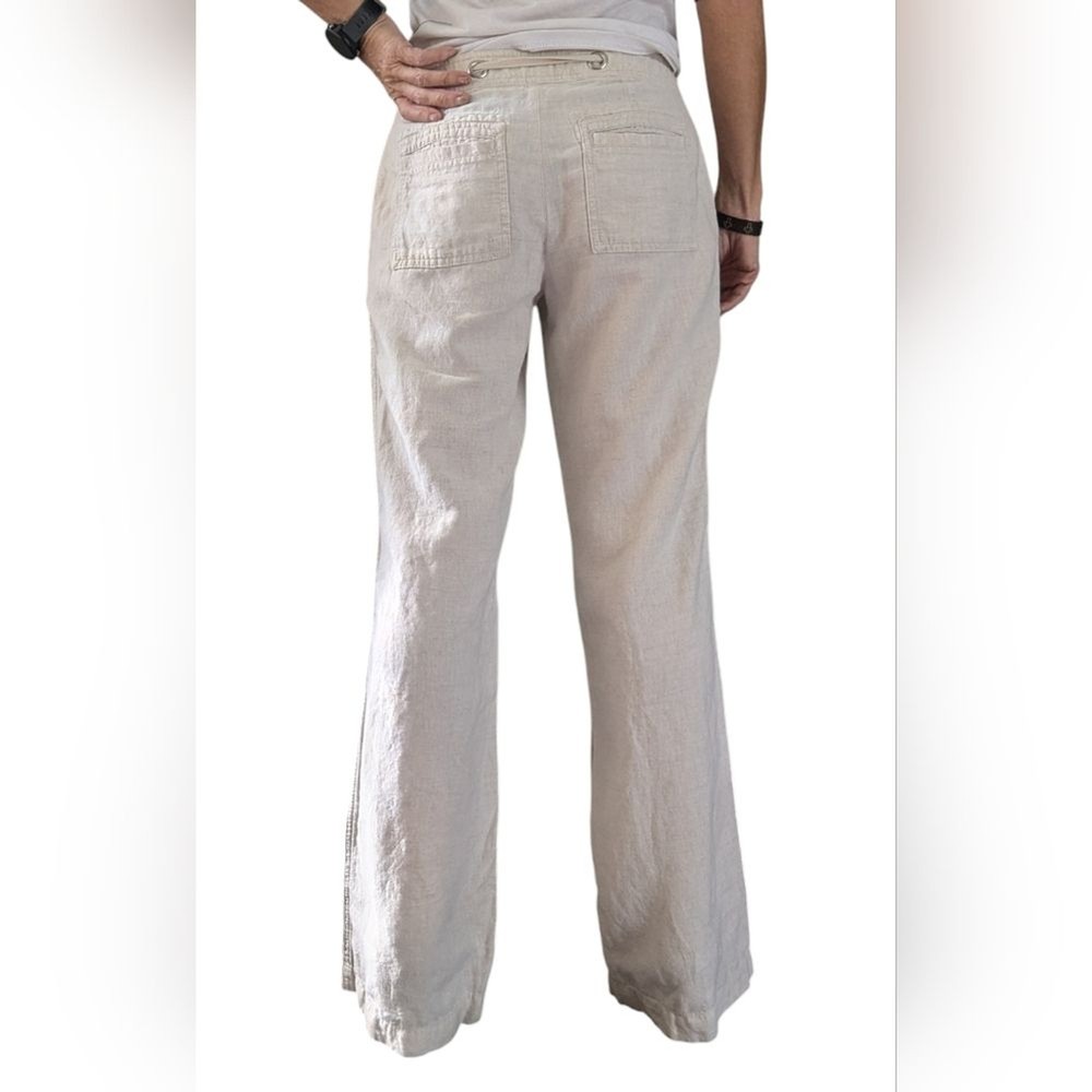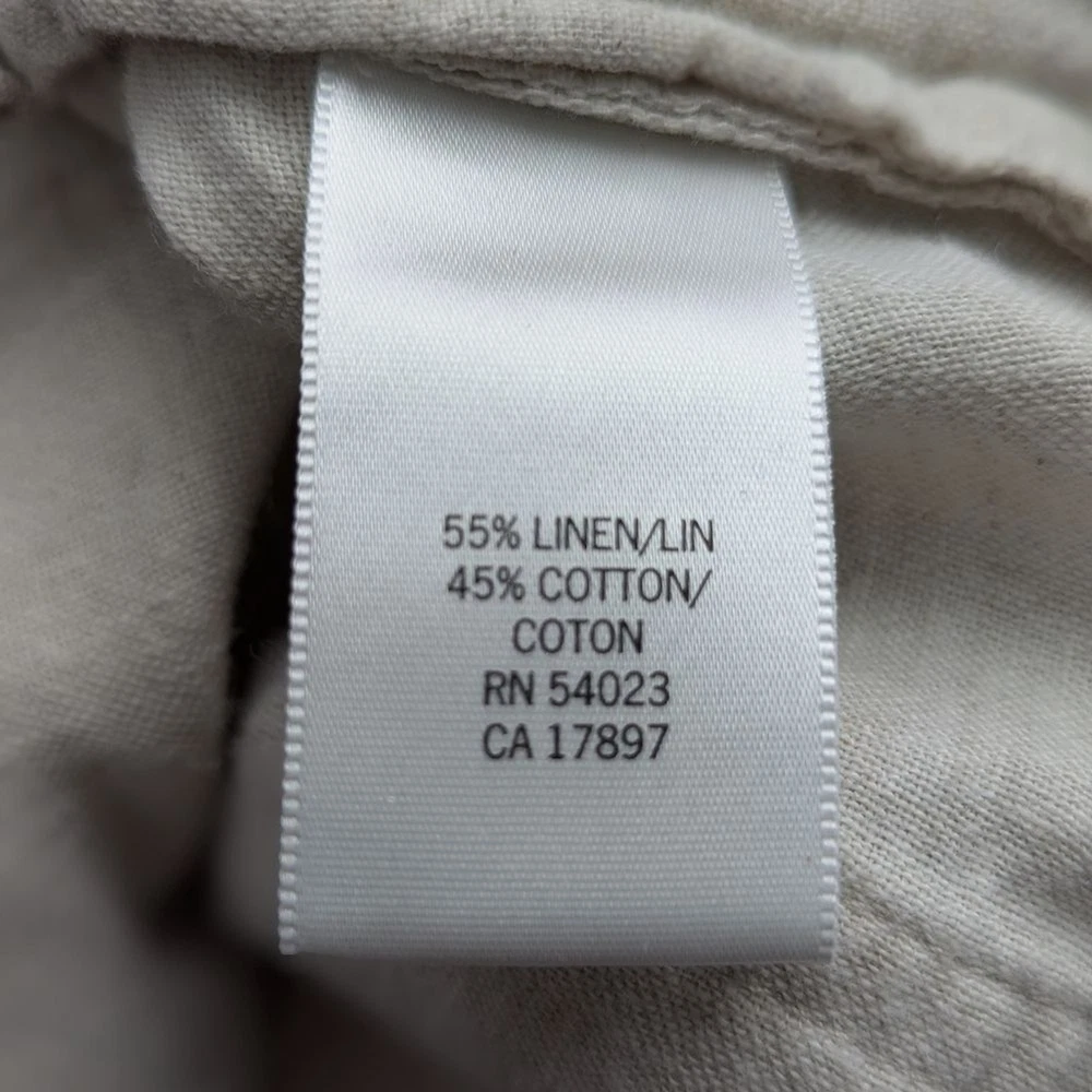 Banana Republic Martin Fit Linen Cotton Straight Leg Slacks Pants Size 4 Drawstring waist with hook/eye, zip closure Double hip pockets & 2 back pockets Lightweight and has some shearness Approximate measurements (laid flat): • Size: 4 • Waist: 15” • Length: 39” • Color: cream / ivory • Material: 55% linen & 45% cotton • Condition: pre-owned; excellent pre-loved condition, no tears or stains – see photos for condition • RN #: 54023 Ships next business day. Offers welcome! keywords: cottagecore, cotton, linen, business casual, Summer, Spring, neutral, preppy, girlhoodcore, coquette girl, minimalist, office, workwear, day date, cute, versatile, beach, vacation