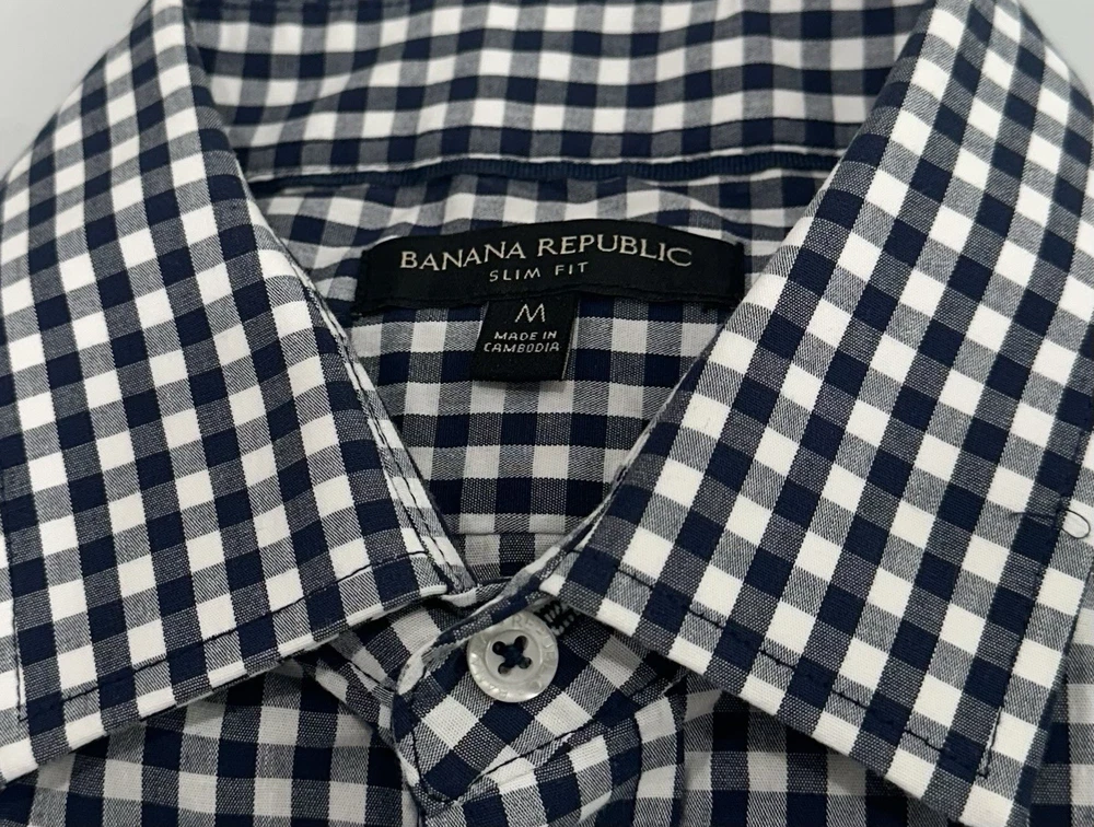 Banana Republic Men's Slim Fit Stretch Poplin Shirt Size: Medium Color: Blue Content: 97% Cotton / 3% Spandex