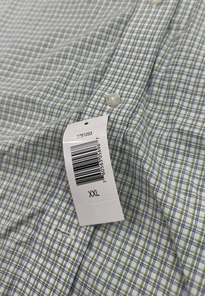 Banana Republic Men's Slim Fit Stretch Poplin Shirt Size: XX-Large Color: Green / Blue Striped Content: 97% Cotton / 3% Spandex