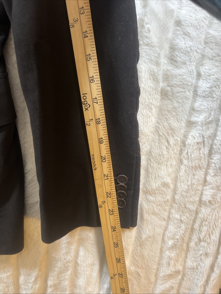 The Banana Republic Moleskin Blazer Jacket in men's size 40S features a tailored fit in a solid brown cotton material, making it suitable for various occasions such as parties, casual wear, work, and business meetings. This classic military-style blazer has a polyester lining and button closure, with a unique moleskin fabric type that adds a touch of sophistication. With its retro and minimalist design, this blazer is perfect for the fall and winter seasons, offering both style and functionality for the modern man.