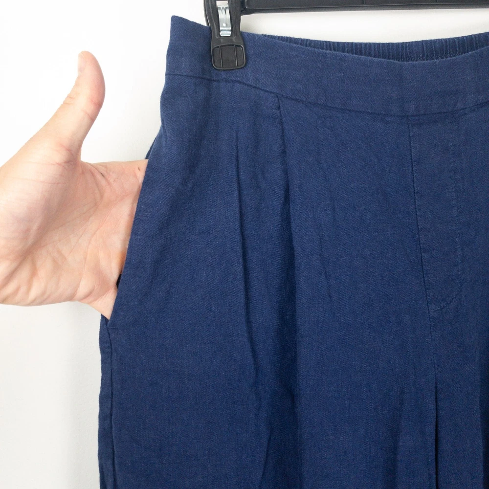 Item Description : Banana Republic Pants Notes & Features : Cropped Wide Leg Pull on Linen blend Front side slash pockets Fake back pockets Size : Women's Size Small (actual: 30x23.5) Measurements : Please see photos. If a measurement is missing, ask and we will get it for you. Condition : Good pre-owned condition. Flaws : Stitching on fake back pocket is starting to come loose; please see in photos. Shipping : We always ship via the USPS with a tracking number ASAP, Monday-Saturday, and do our best to take care of you and the item at ALL times. Please see the Shipping, returns, and payments section for all available shipping options and prices. Packaging : The item is packaged/shipped in a sealed plastic bag inside of a sealed poly bag mailer. Storage : All items are stored in a smoke free home. Any questions? Please ask; we are happy to answer. Thank you for looking!