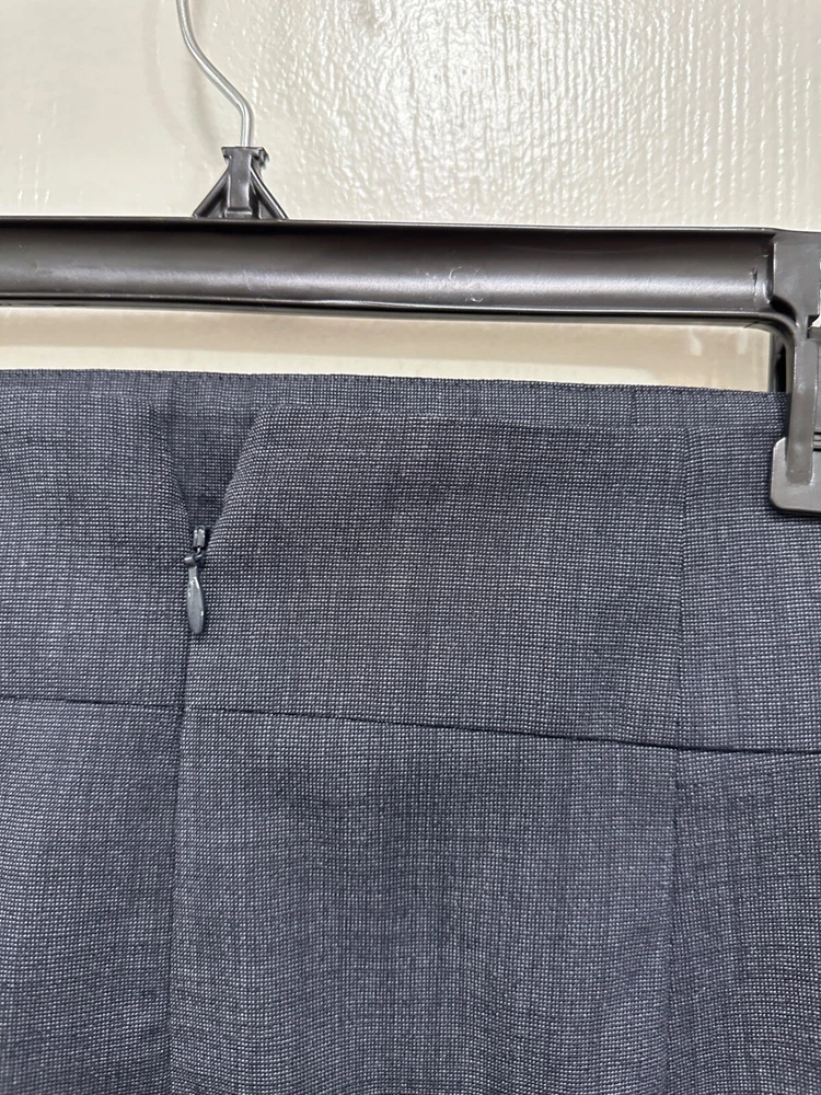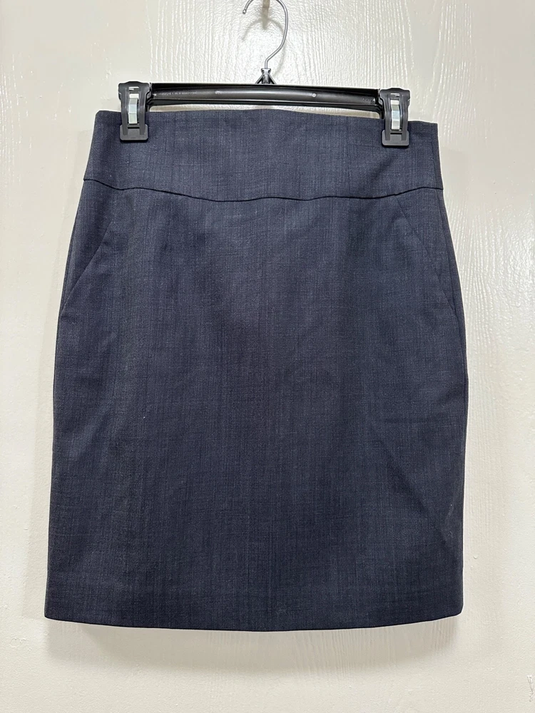 This Banana Republic skirt is perfect for any occasion. It features a solid gray color and is made from a blend of spandex and wool, providing a comfortable and stretchy fit for petite women (size 0P). The skirt is knee-length and has a straight and pencil style, with a zipper for added accent. The skirt is perfect for any casual or formal event, and its stretchy material ensures a comfortable and flattering fit. Its brand, Banana Republic, is known for its high-quality and stylish clothing, making this skirt a great addition to any wardrobe.
