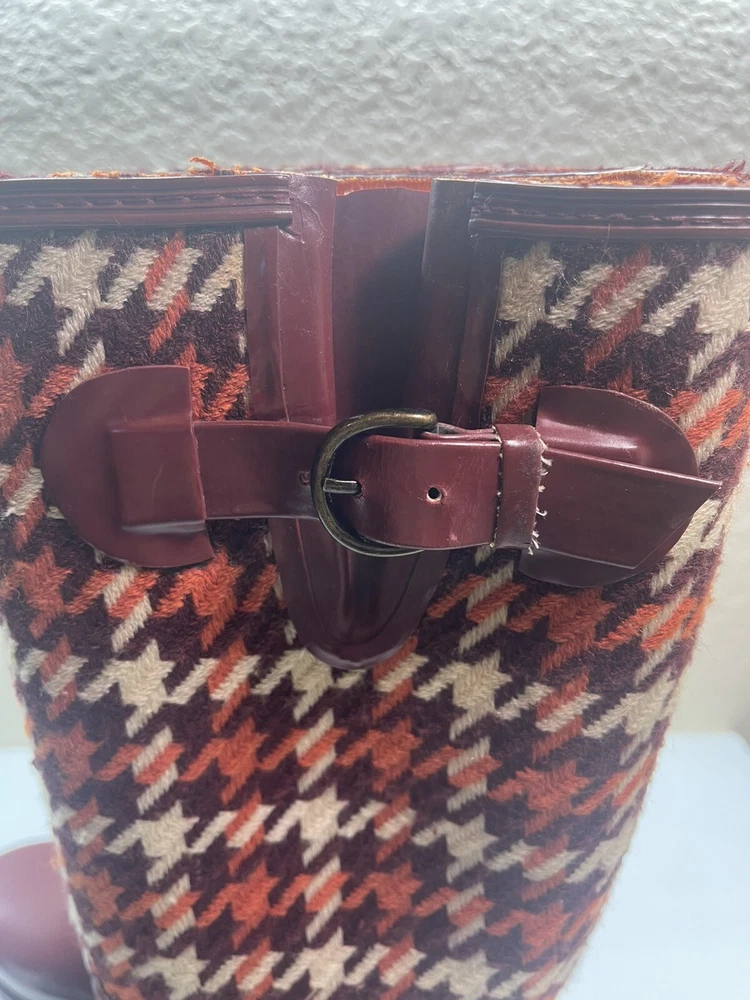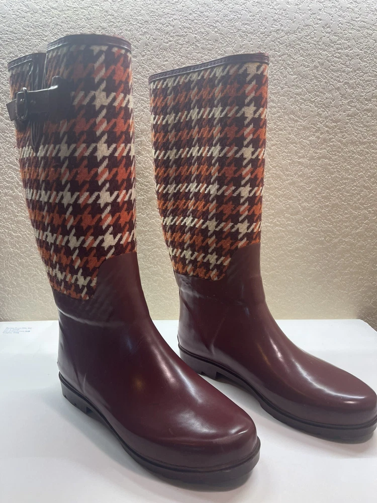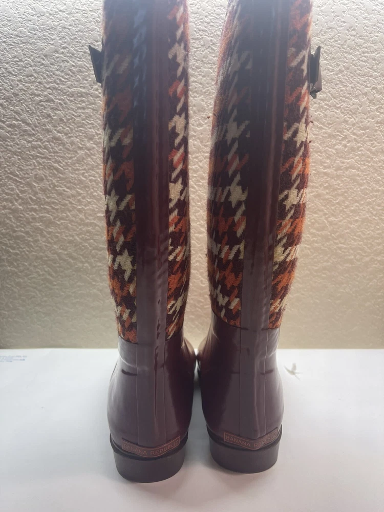 Banana Republic Rain Boots Wellies Houndstooth Rubber Orange/Red Preppy Size 8