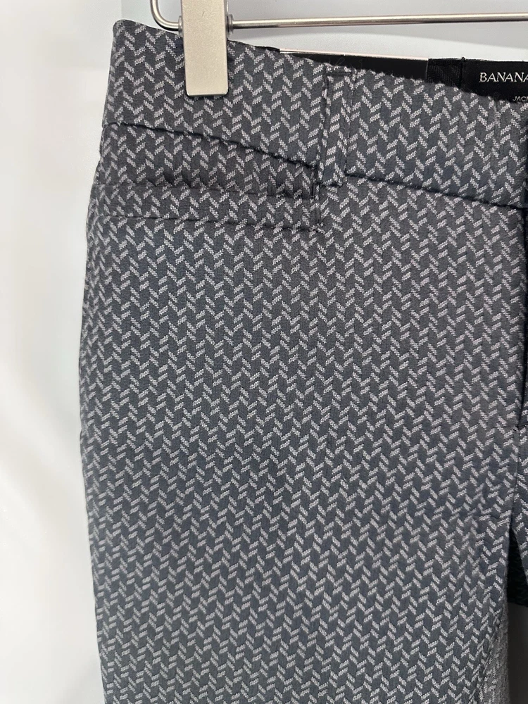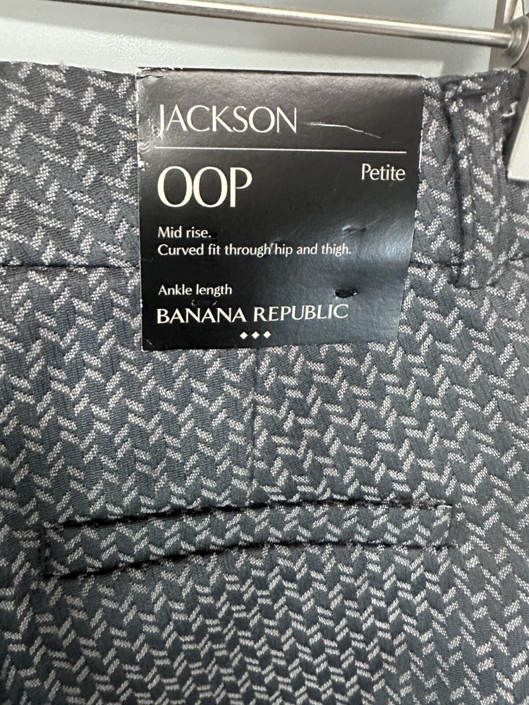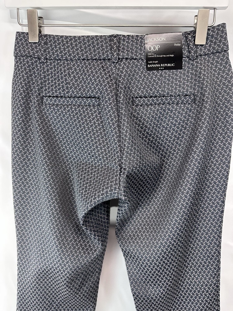 Elevate your wardrobe with these stylish Banana Republic Gray Jackson Fit Slim Ankle Petite Trouser Pants. Perfect for any occasion, whether it be travel, casual or business, these pants are made of a comfortable blend of polyester, spandex, and cotton twill fabric, ensuring a versatile and comfortable wear. The flat front and mid-rise fit provide a flattering silhouette, while the slimming feature adds a touch of confidence to your look. These pants also come equipped with pockets, making them both practical and fashionable. Machine washable and measuring 25 inches inseam, these pants are perfect for any season, whether it be winter, summer, fall, or spring. Made in India and designed for women, these pants are available in size 00P and waist size 26 inches. Add these Banana Republic pants to your collection today!