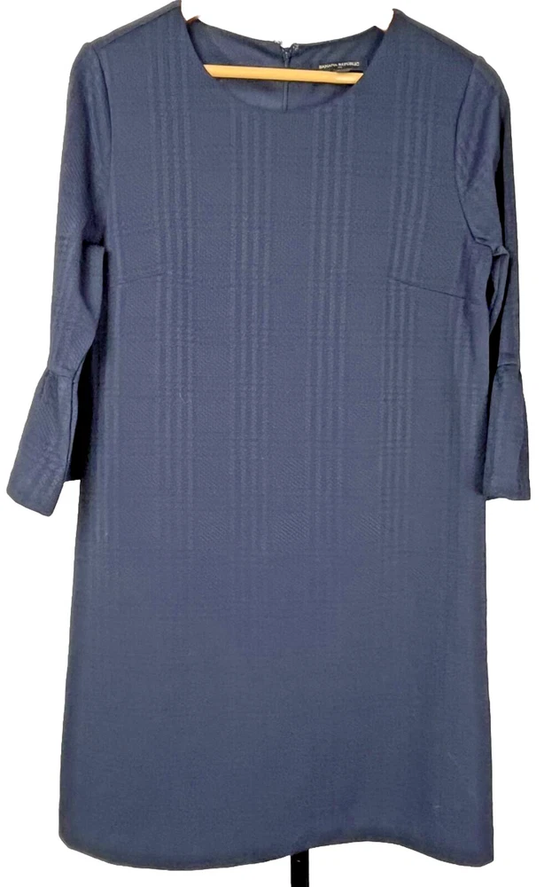 Banana Republic Sweater Dress Blue 3/4 Bell Sleeve Sheath Knee Length Stretch Lined Women's Size Medium Bust 39 Hips 40 Length 36 inches Zip Hook/Eye Closure Polyester Spandex