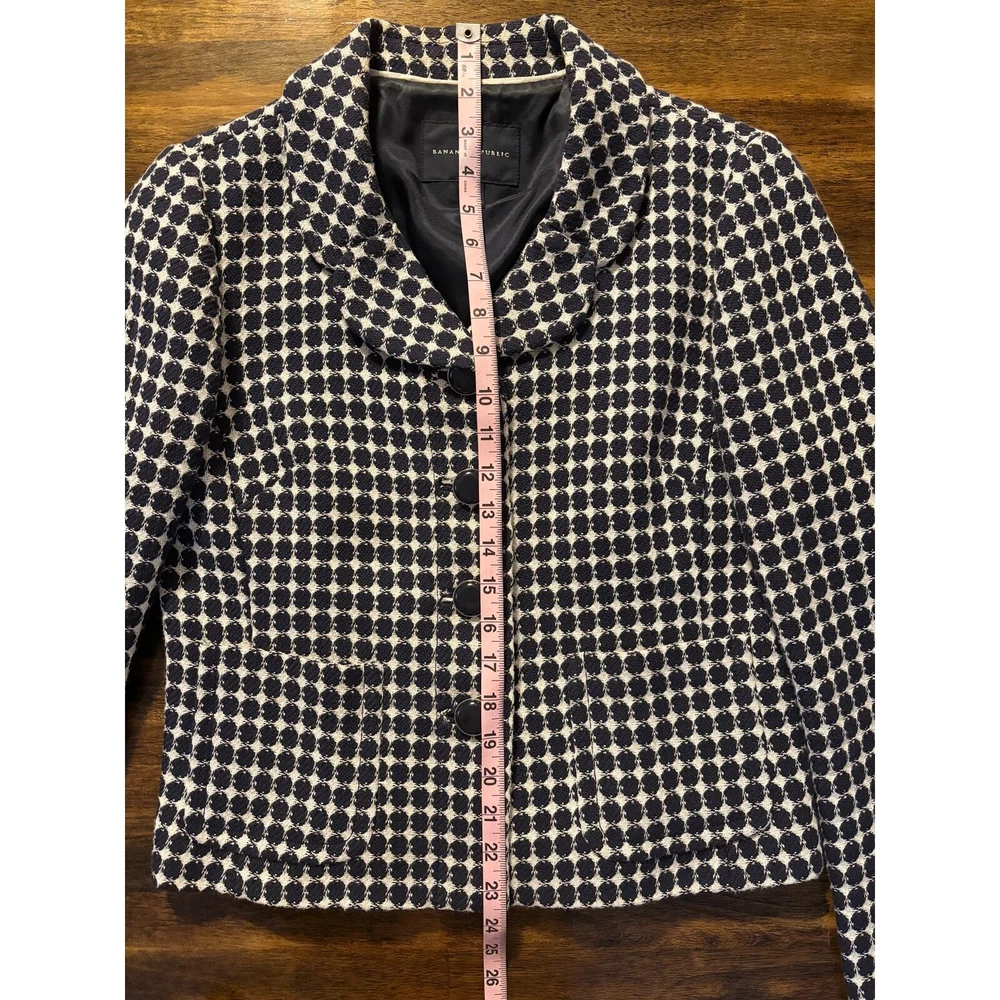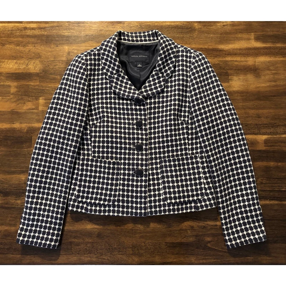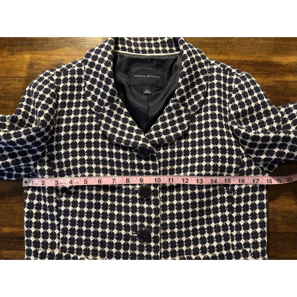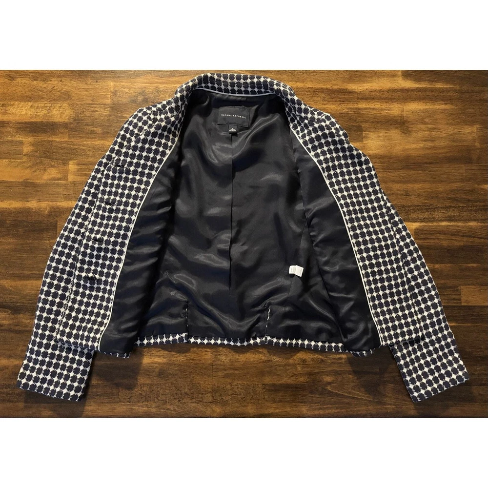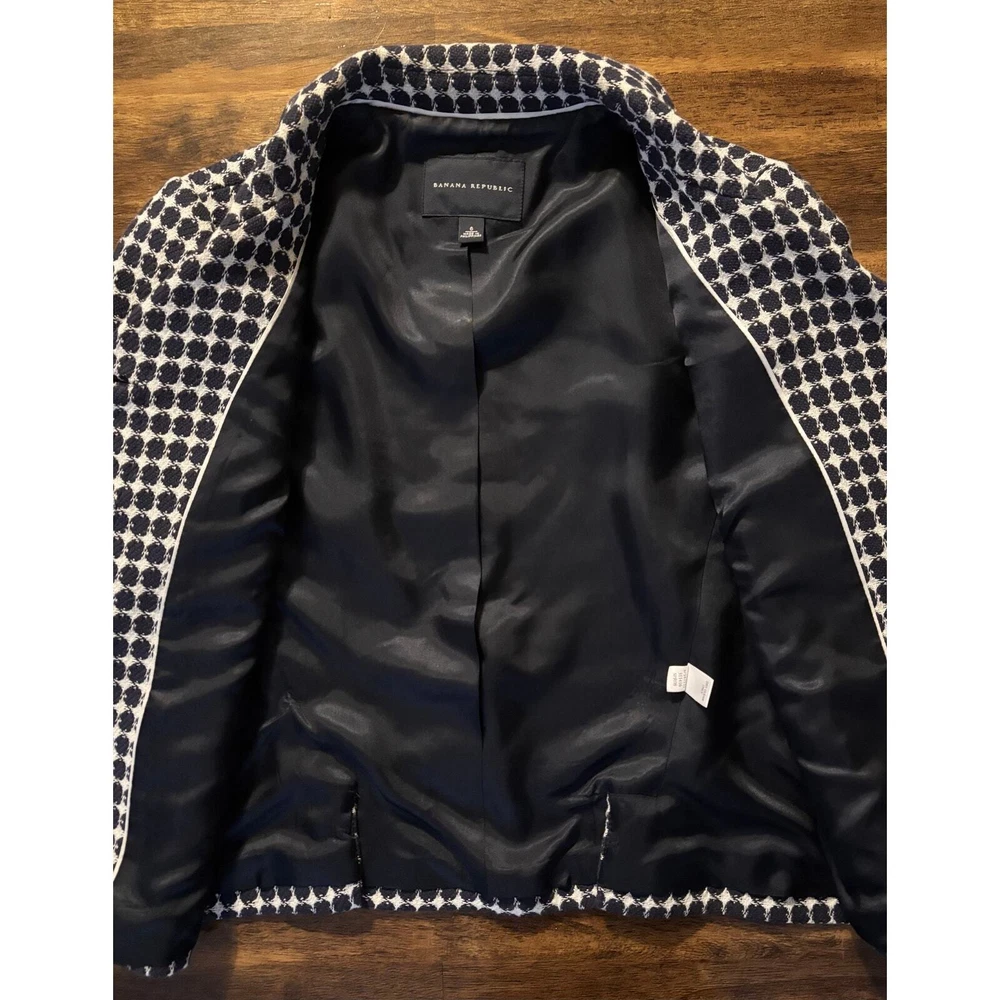 Banana Republic Women’s 6 Blazer Cotton Linen Blend 3 Button Front Pockets Navy blue and white. 88% Cotton 12% Linen I don’t use any strongly scented laundry detergents and I have a smoke free home! Thank you for checking out my items. Message me with any questions! 381