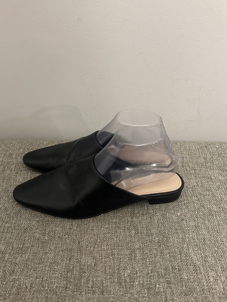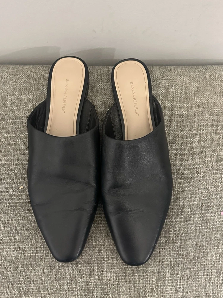 This product is a pair of Banana Republic Women’s Black Leather Slip On Preppy Flats in size 7.5. These stylish flats feature an almond toe shape, slip-on closure, and a comfortable leather lining. They are perfect for a party, cocktail event, or business occasion, with a preppy theme that adds a touch of elegance. The lightweight and comfortable design make them suitable for all-day wear, while the leather upper and outsole ensure durability and quality. Ideal for a chic and sophisticated look. Preowned Good Condition