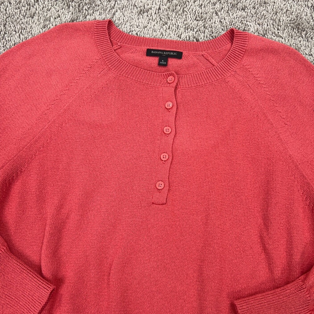Banana Republic Sweater Womens Large Passion Punch Raglan Henley Office Coastal Condition: - Overall in good used condition. - No rips, stains, or tears. - Nice coral/salmon color called passion punch. Size: - Womens large. Measurements: - Previous washings may change the sizing written on the tag. - Please refer to the photos above for all measurements. - Please compare our measurements to that of one of your favorite garments. - Please note, item measurements are approximate . All items are bagged and sealed after being photographed, then stored in a smoke free environment to ensure the item is exactly the same as when photographed. I carefully package and ship daily. Feel free to contact me with any questions. All items have been washed per eBay standards & policies.