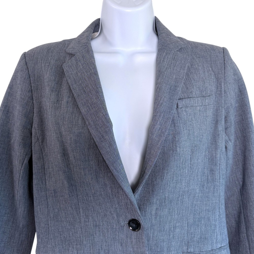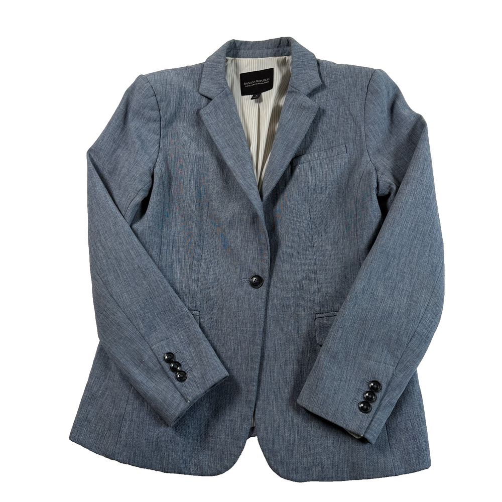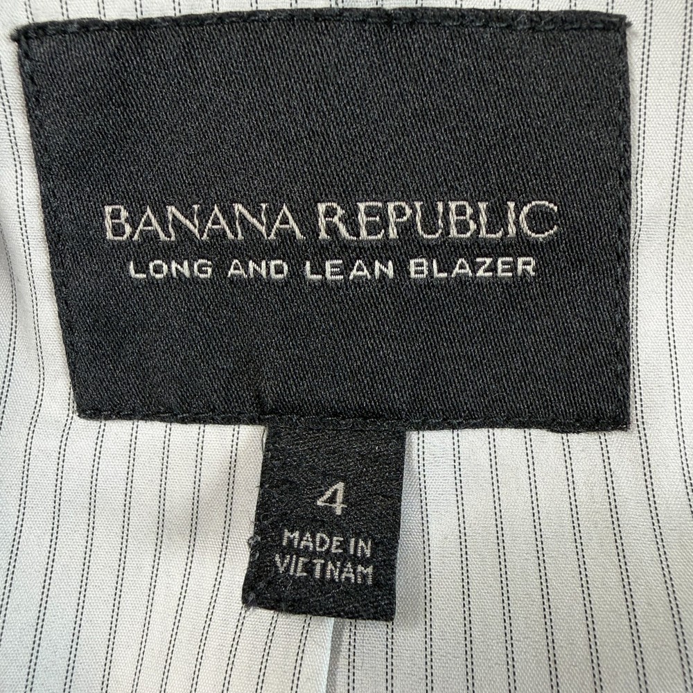 Banana Republic Womens Long and Lean Stretch Cotton Blend Blazer Blue Sz 4 Excellent pre-owned-condition Measurements (approximate, laying flat) Bust (underarm to underarm): 17" Length: 25" Style: Academia, Preppy, Career, Executive