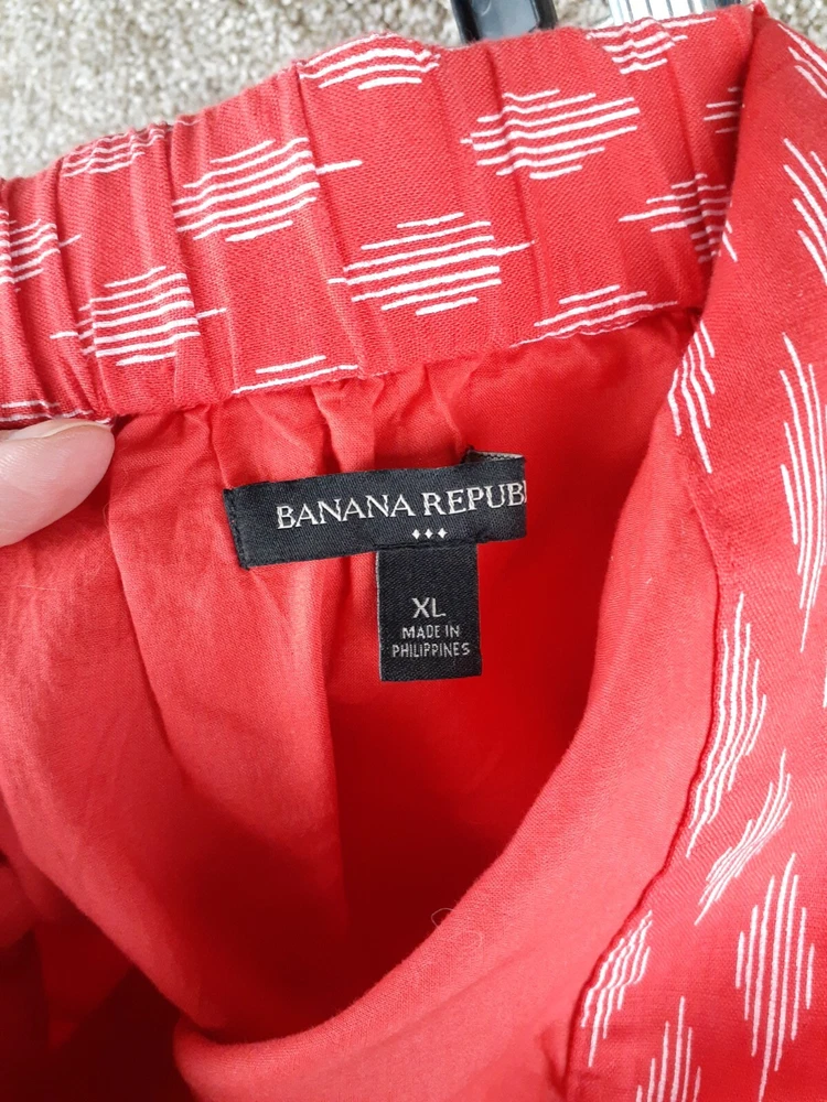 Type: Skirt Skirt Length: Short Occasion: Business, Casual, Party/Cocktail, Travel, Workwear Vintage: No Features: Pockets Size Type: Regular Garment Care: Machine Washable Handmade: No Color: Red Country/Region of Manufacture: China Pattern: Floral Theme: American, City, Classic Size: XL Brand: Banana Republic Department: Women Style: Mini Season: Fall, Spring, Summer, Winter Personalize: No Material: Cotton, Linen