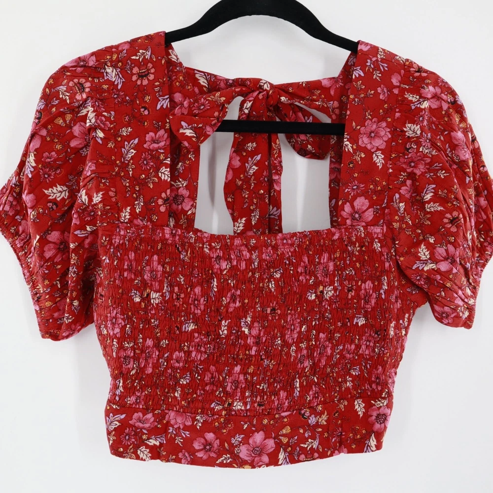 Band Of The Free Joelle Crimson Floral Smocked Top Women's Boho Bohemian Gypsy Sweet smocking covers the bodice of our stretchy Joelle top, framed by puff sleeves and finished with a tie back. This top is like your grandma's garden had a party on your shirt. It's got all the florals and puffs to make you feel like a bohemian queen, minus the crown. And if you get tired of compliments, just tie the bow tighter to block out the noise. • Smocked bodice • Elastic cuffs on sleeve • 100% Viscose • Hand wash, line dry • Puff sleeves for added flair • Back tie closure • Lightweight and breathable B.O.G Collective Band of Gypsies Features: • bohemian, boho, cottagecore, grannycore, flowy, hippie, paisley, festival, garden party, gypsy, witchy Condition: New With Tags