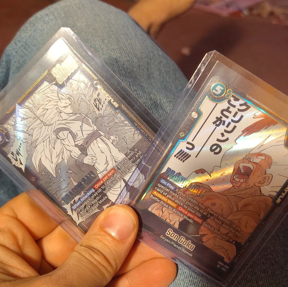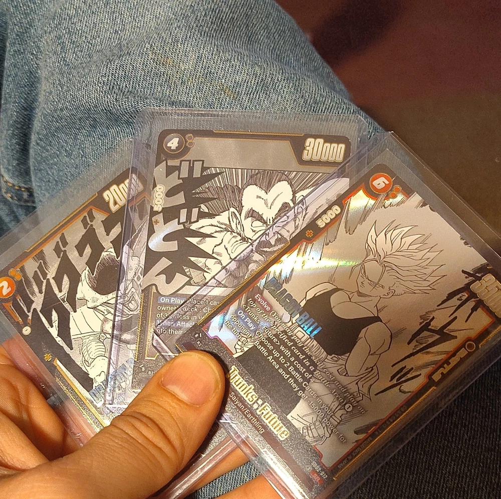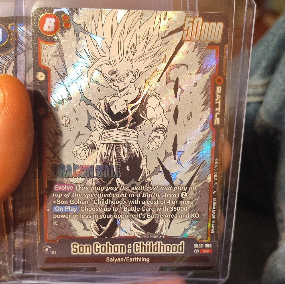 Card Name:Piccolo, Son Gohan: Childhood, Son Goku, Frieza, Trunks: FutureCard Size:StandardLanguage:EnglishCharacter:Piccolo, Son Gohan, Son Goku, Frieza, TrunksCard Type:BattleCard Condition:Lightly Played (Excellent)Finish:HoloCard Number:SB02-008, SB02-009, SB02-010, SB02-011, SB02-012Game:Dragon Ball Super Card GameAge Level:6+Set:SB02Features:SRMaterial:Card StockNumber of Cards:18Manufacturer:BandaiYear Manufactured:2018Attribute/MTG:Color:Red, Green, Blue