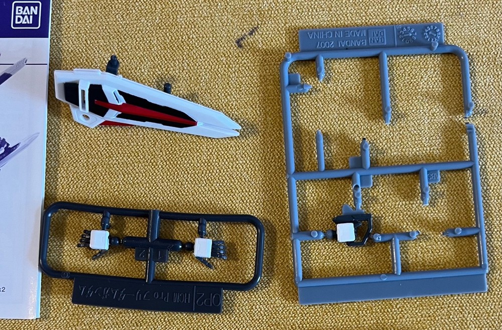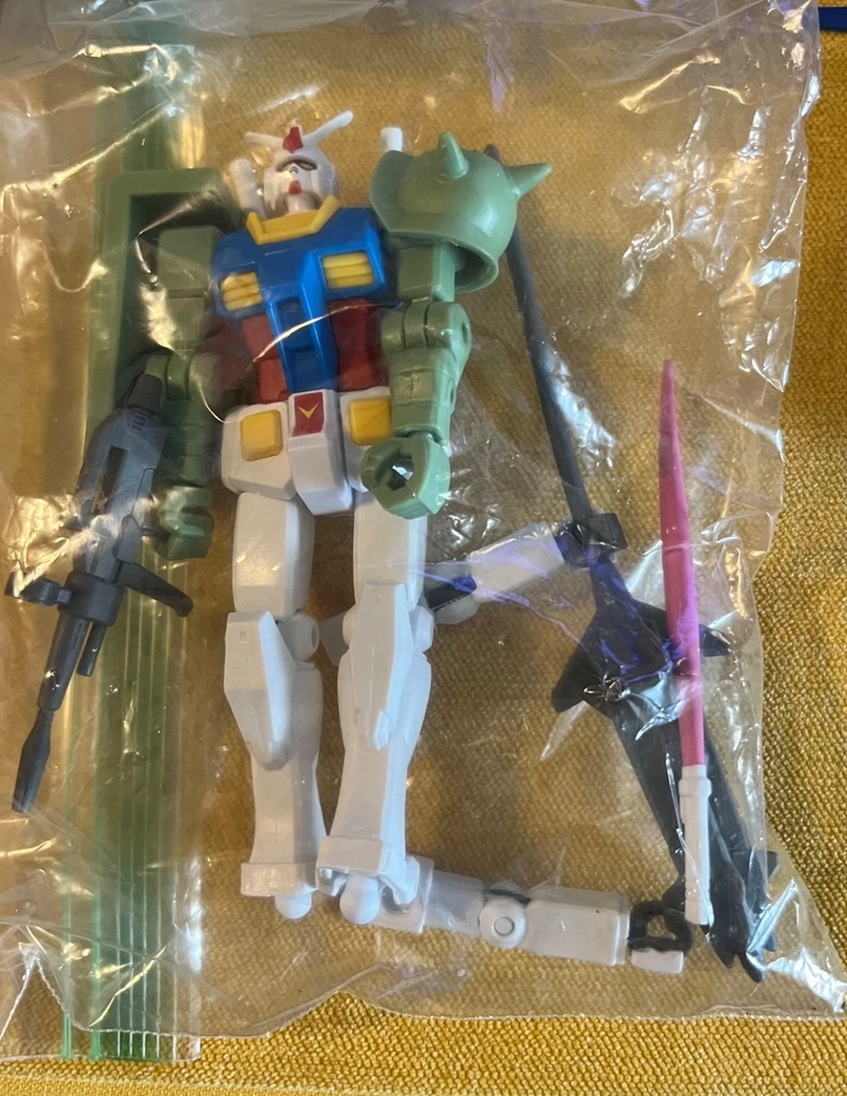 2007 Bandai Gundam model kit - already assembled. I believe its complete except for the vertical clear plastic piece for the stand. Box has wear and plastic insert is missing. Includes a bonus gundam from a different line. Bonus gundam is missing feet. Please see photos for condition.