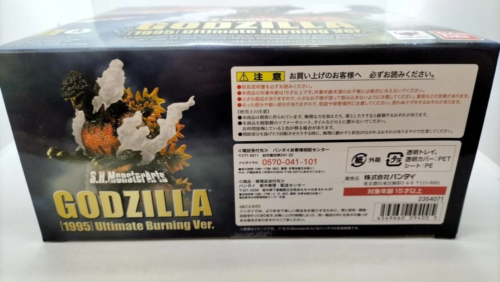 Item Title Bandai S.H.Monsterarts Godzilla 1995 Ultimate Burning Ver. Payment Supports managed payments Please pay within 5 days after auction is finished. About Us We are located in Japan. It's our pleasure to make you happy by proposing our recommend item. If you have any questions or request about items, please feel free to ask us. International Buyers - Please Note: -Import duties, taxes, and charges are not included in the item price or shipping charges. These charges are the buyer's responsibility. -Please check with your country's customs office to determine what these additional costs will be prior to bidding/buying. -These charges are normally collected by the delivering freight (shipping) company or when you pick the item up - do not confuse them for additional shipping charges. -We do not mark merchandise values below value or mark items as - gifts - The US and International government regulations prohibit such behavior. Thank you for your understanding.