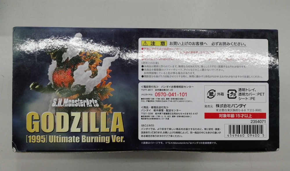 Item Title Bandai Godzilla 1995 Ultimate Burning Ve S.H.Monsterarts Payment Supports managed payments Please pay within 5 days after auction is finished. About Us We are located in Japan. It's our pleasure to make you happy by proposing our recommend item. If you have any questions or request about items, please feel free to ask us. International Buyers - Please Note: -Import duties, taxes, and charges are not included in the item price or shipping charges. These charges are the buyer's responsibility. -Please check with your country's customs office to determine what these additional costs will be prior to bidding/buying. -These charges are normally collected by the delivering freight (shipping) company or when you pick the item up - do not confuse them for additional shipping charges. -We do not mark merchandise values below value or mark items as - gifts - The US and International government regulations prohibit such behavior. Thank you for your understanding.