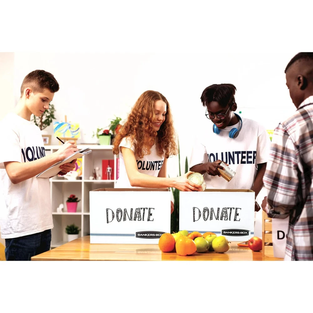 Product details Free up space in any area using this Bankers Box file storage. It is ideal for organizing the office, home, dorm room and much more. The lift-off-lid boxes are easy to use and can be utilized for archiving receipts, tax papers, contracts and other important documents. Pack items for moving or give the closet a makeover. Each of these white storage boxes is ideal for moderate stacking, and the durable handles make them easy to transport. Basic-duty with 350 lbs. stacking strength. They measure 12""L x 10""W x 15""D and are available in a convenient 10-pack of file storage bins, so there are plenty to get the job done. Basic-duty, 350 lbs. stacking strength Standard set-up construction for moderate stacking with shelving 10 pack Assembled Dimensions: 10”H x 12”W x 15”D" Lift-off lid ships attached to prevent lid loss, then tears off for use Double wall, single wall construction Features Stackable Bases Manufacturer Part Number 79910 Color White Manufacturer Fellowes Recommended Location Indoor Material Paper Assembled Product Dimensions (L x W x H) 3.12 x 22.12 x 10.00 Inches