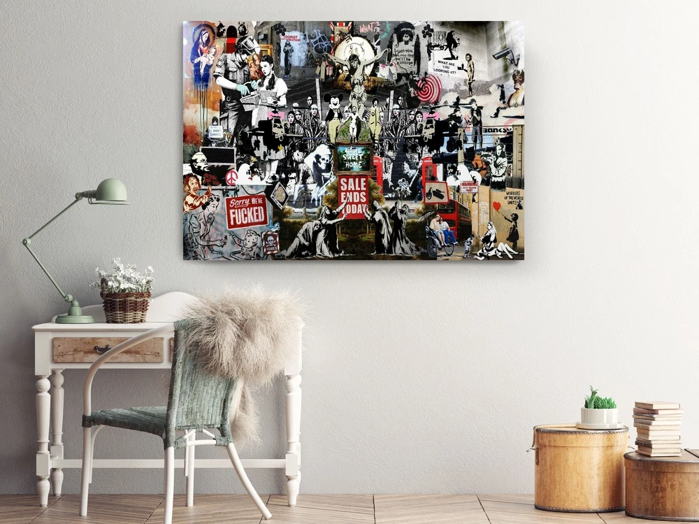 Banksy Canvas Print Collage Art Ready To Hang Wall Decor Home Decor