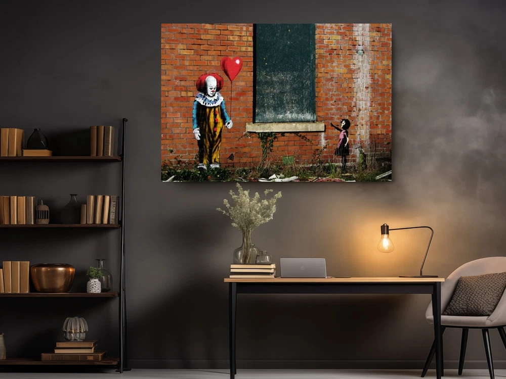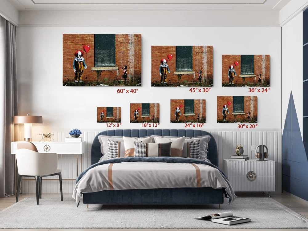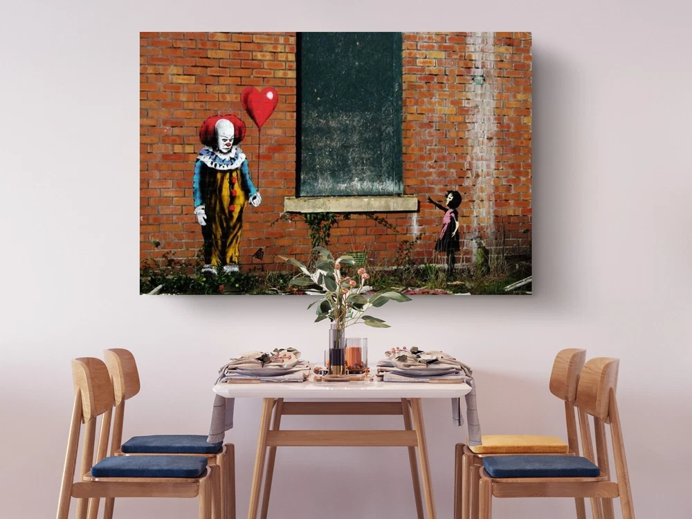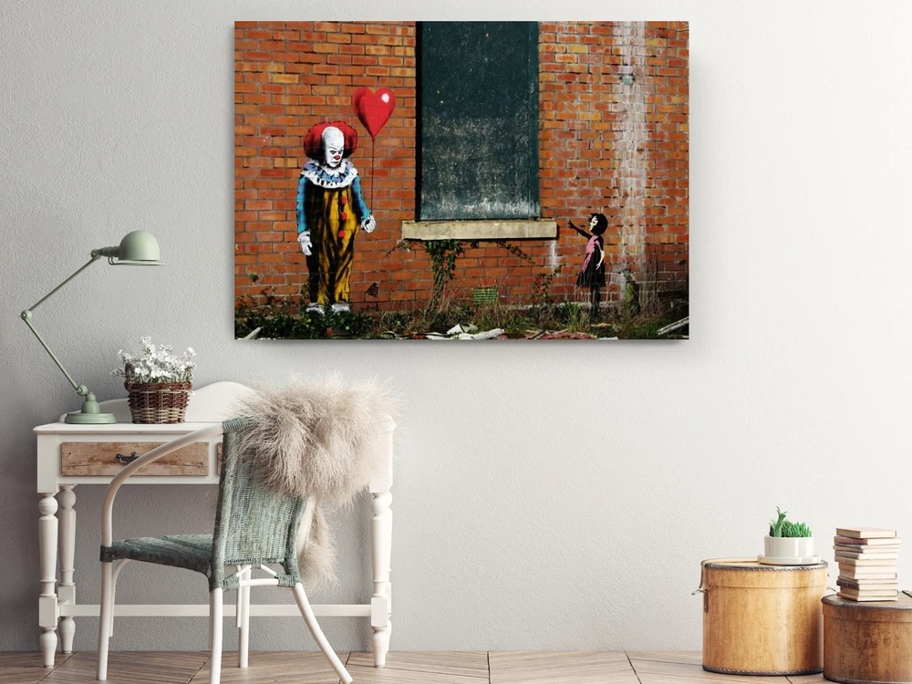 Banksy Clown with Red Balloon Sad Girl, Canvas Print Fine Art Photography