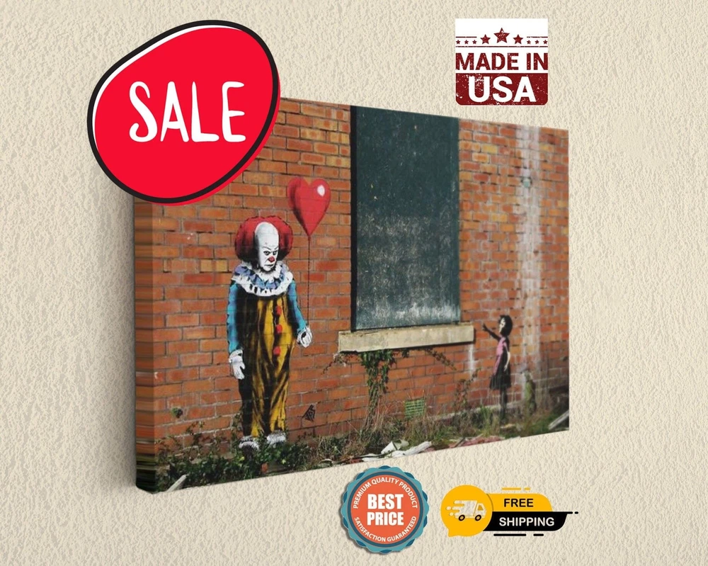 Theme: Photography, Art, Clown Artist: Banksy Subject: Clown Type: Print Color: Red Brand: Unbranded Material: Canvas