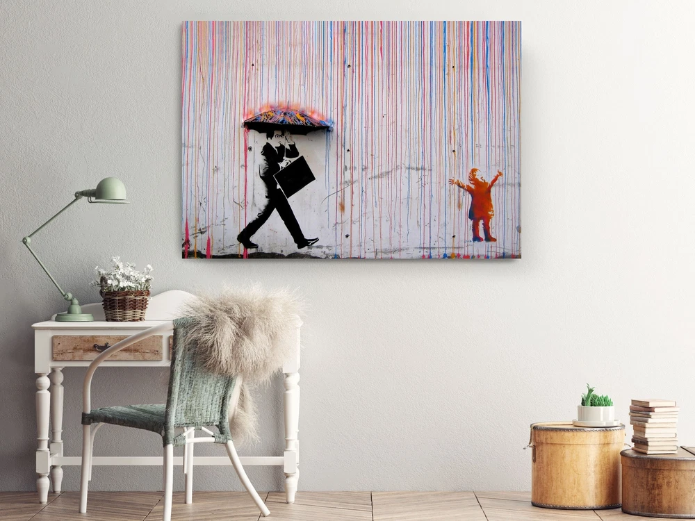 Banksy Colored Rain - Wall Art, Canvas Print, Home Decor