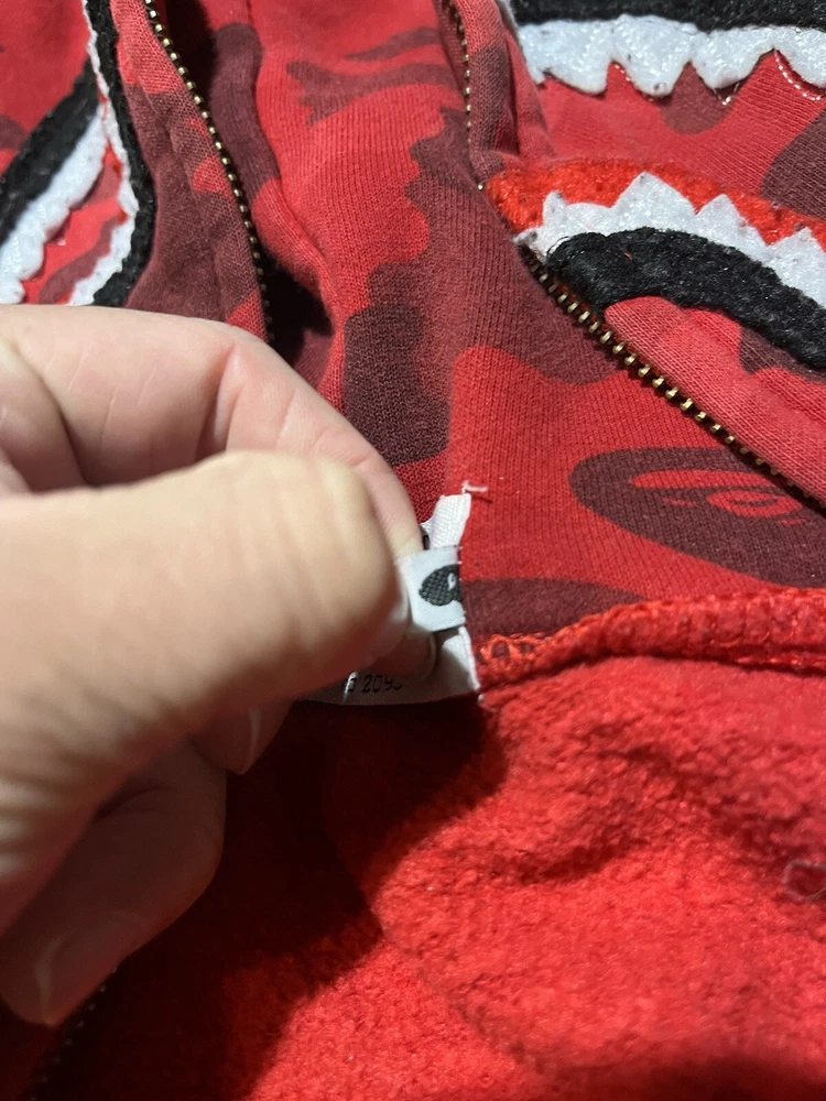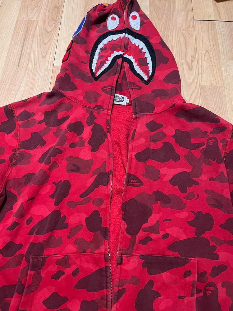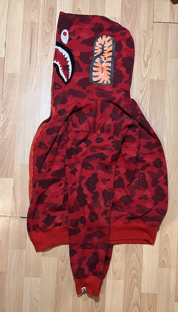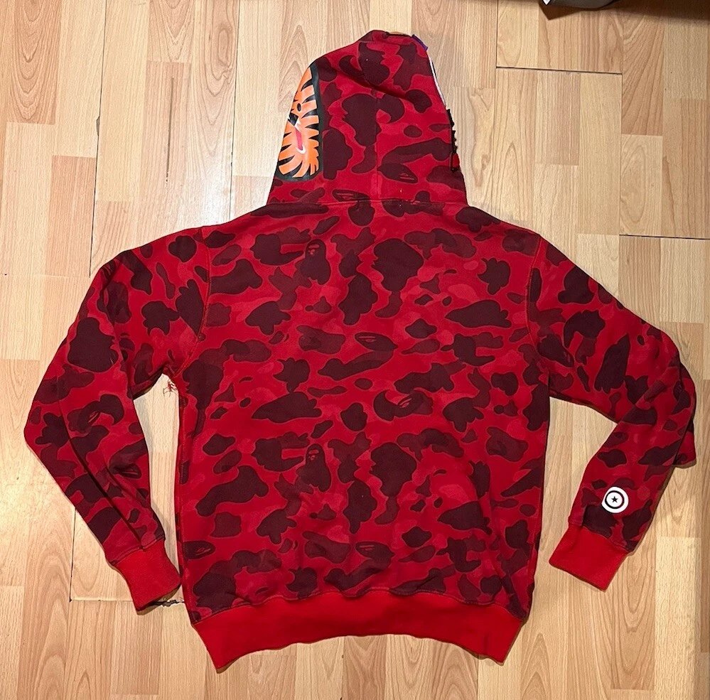 Bape A Bathing Ape Shark Camo Hoodie Mens Large Red Long Sleeve Logo No Zipper . Condition is Pre-owned. Shipped with USPS Ground Advantage.