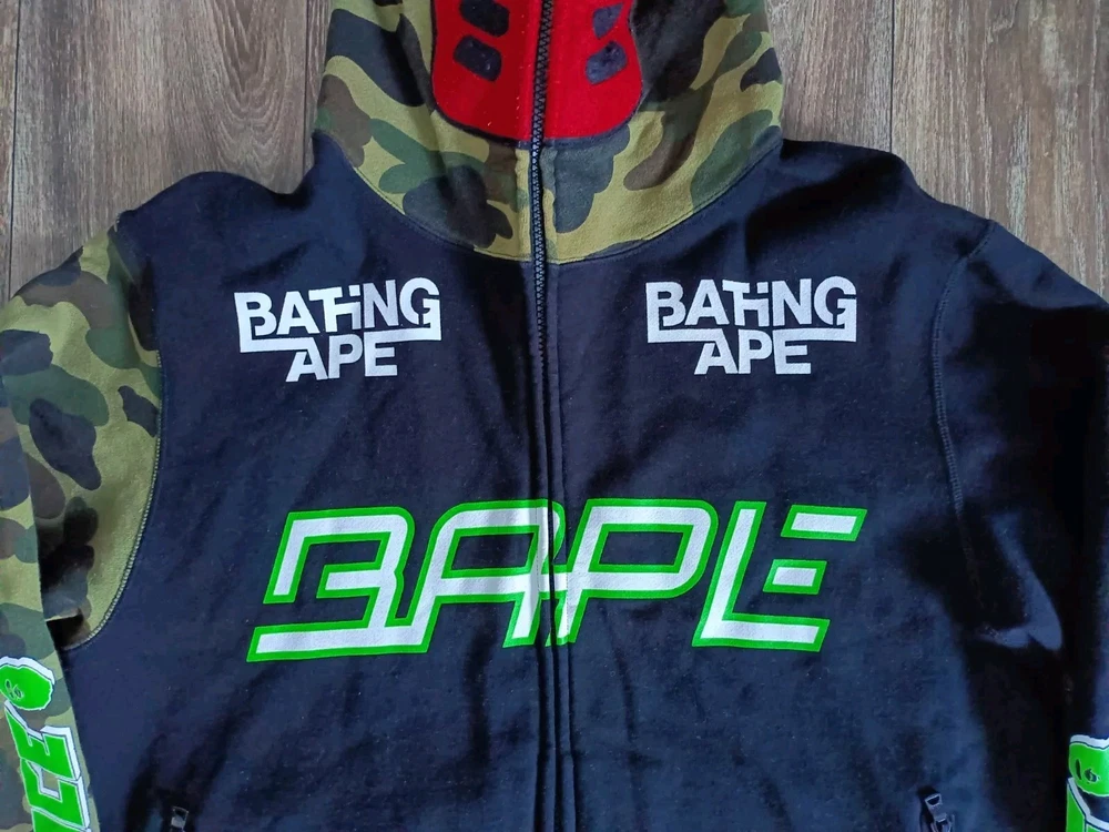 Bape Hoodie Men's Size XL BMX Mask Camo Graphic Zip Up Rare -Preowned In Amazing Condition No Rips Or Stains -Pit To Pit (22 inches) -Length. (28 inches)