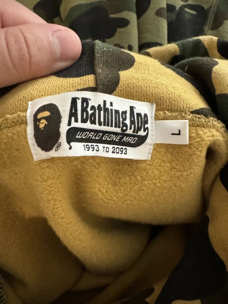 Vintage Bape Zip Up Hoodie Black And Grey Camo