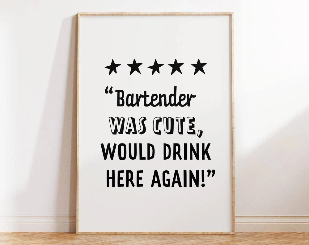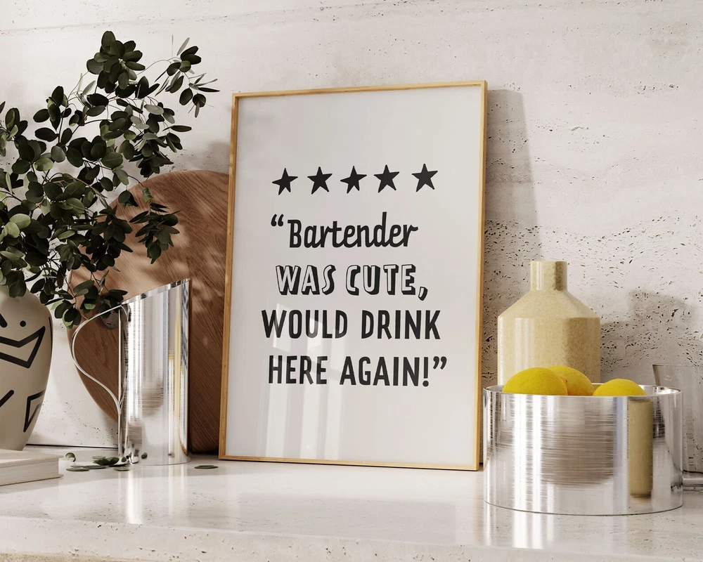 Bar Cart Art Print Bartender Reviews Art Printable Wall Art Modern Bar Cart Decor Print Trendy Aesthetic Sign Material: Premium luster photo paper Print type: Inkjet printing One side printed + The finish provides the highest possible resolution and color saturation + Lasts up to 200 years in color and 400 years in black-and-white + Printed on high-quality resin-coated photo base paper medium + Posters can be hung with double-sided tape, tacks, or framed + Hand washing with a gentle cry cloth is recommended for extended durability I will hand select the best choice of paper for your chosen design to ensure top quality results for a beautiful, bright and luxurious print. All prints are sealed in cellophane slips for protection during transportation, and are shipped in a protective cardboard envelope.