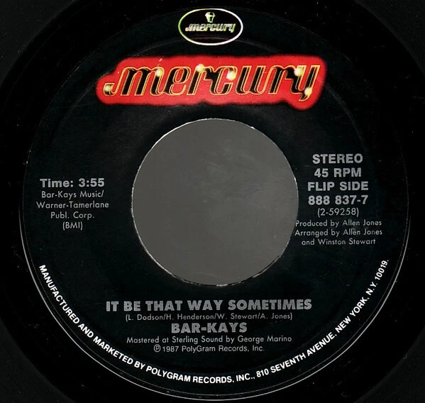 Bar-Kays, Certified True, 7", Styrene Comment(s) and Condition Notes specific to this listing: ***Picture Sleeve Not Included. Beautiful vinyl, bright clean label. Packed carefully, shipped quickly.. Packed carefully and shipped quickly.*** Media Condition: Near Mint (NM or M-) Based on visual inspection. Album Cover / 7" Picture Sleeve (GENERIC = NONE) / CD Insert Condition: Generic STOCK PHOTOS HAVE BEEN USED WITH LISTING: Photos shown have been pulled from an online database. A picture / company sleeve / CD insert in the photo does not guarantee it is included. If a picture sleeve / insert is included, its Condition will be filled in above this line. SPECIFICATIONS ARE AUTO-FILLED: If there is something specific you require, please ask us to confirm. Thank you for having a look at our collection! Be sure to follow us so you're notified when we post new items. IMPORTANT NOTE: A picture sleeve in the stock photo of a vinyl record does not guarantee a picture sleeve is included with this item. If the vinyl record sleeve condition specifies "Generic" THERE IS NO PICTURE SLEEVE (item will come in a company sleeve or plain sleeve.) Track List : A. Certified True 4:30 B. It Be That Way Sometimes 3:55 Catalog Number: 888 837-7 Notes on shipping: All items are packed carefully and shipped quickly. Domestic postage is included with the price. International customers buying multiple items: Please group items into a single order and hold payment until package weight/dimensions can be adjusted. Notes on Media Grading (visual inspection only): Mint: Only used for sealed items. Near Mint: As close to Mint condition as any used item can be. The media shows no obvious signs of wear. Part of an exceptional collection, curated with care, carefully handled, and properly stored. Very Good Plus: A minimal amount of storage or play wear, if present, will be superficial, difficult to see, and will not detract from sound quality. Very Good: Pronounced storage or play wear and, maybe, a few superficial scratches are present. There may be some noise during playback but no skips. Good Plus or Good: Significant noise can be expected on playback due to visible scratches and/or groove wear. LP Record Cover Grading: Mint: Only used for sealed items. Near Mint: Sharp spine with crisp edges. May have age-related (but minor) wear & tear. A very nice sleeve suitable for most collectors. Very Good Plus: Sleeve may have a small sticker or bit of writing but looks great. Minimal ring wear. Very Good: Acceptable cover but may have drill hole or cut corner. May have split sides, large sticker, or prominent ring wear. Good Plus: Obvious wear and tear. Minor to major flaws including sticker rash, doodles or other distracting writing, major ring wear, soft spine, or split sides. CD Insert Grading (Shown Above As Sleeve Grading): Mint: Only used for sealed items. Near Mint: Insert appears to have never been remov