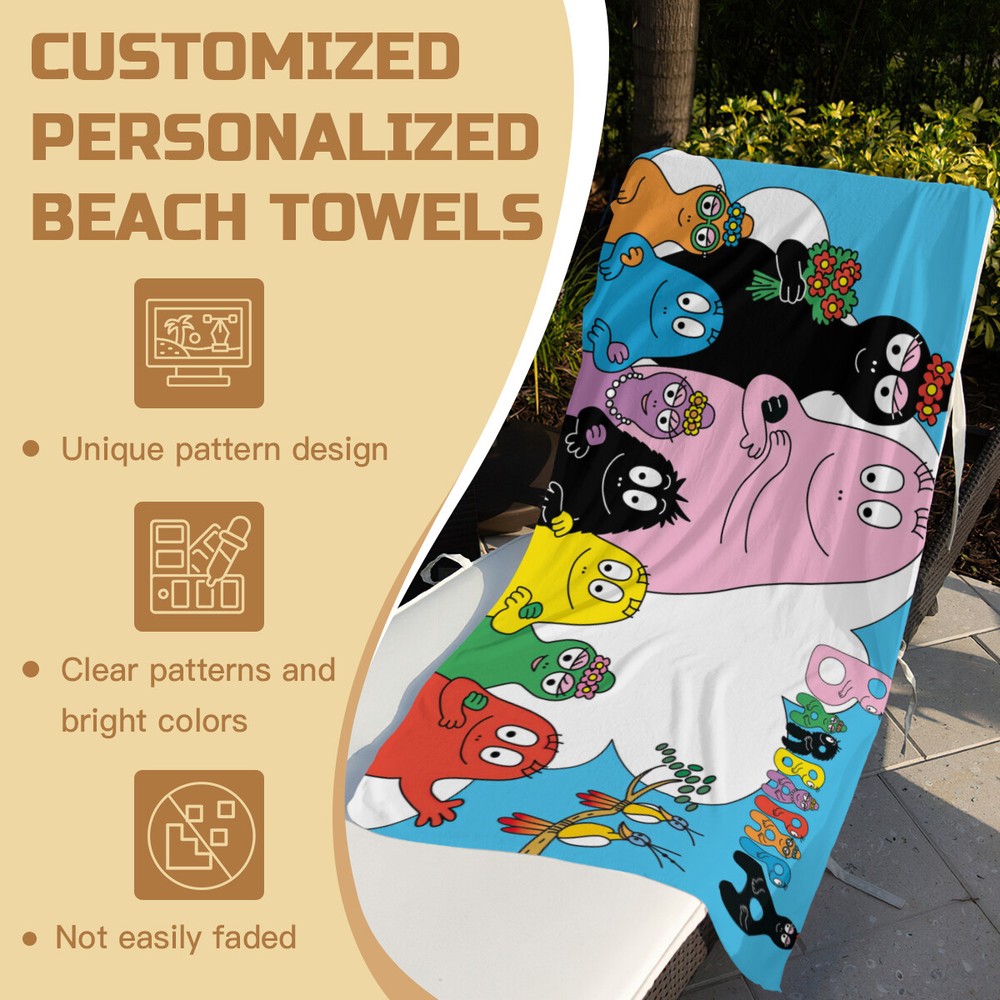 ☀【Barbapapa Element Design】★ : When it comes to bathing and swimming, the beach towel provides the perfect backup with this cool and colorful Barbapapa beach towel. ☀【Perfect Gift for Barbapapa Lover】★ : 100% Microfiber, soft, quick-drying, and sand-proof. This is NOT a plush, oversized towel. Unique Design & Compact Size: Measures 30 x 60 inches(75 X 150 CM), Net Weight: 280 Grams. Folds compactly, making it easy to carry and ideal for all. ☀【Indoor & Outdoor USE】★ : This versatile towel brings colorful style and cozy comfort to a bathroom, pool, or beach near you. Whether you are lying on it to soak up the sun or using it to soak up the water after a swim, it’s always got them covered. As a cute home decor accessory, this towel can double as a fun poster or decal on your bedroom wall. ☀【Easy Care】★ : You can throw the towel into the washer and dryer without worrying about the colorful animated cartoon characters fading, making it a fun bathing, swimming and shower accessory. ☀【Item Includes】★ : A beach towel measuring 30" (W) X 68" (L). It's large, fun and easy to wrap around everyone. The towel is lightweight and folds easily to carry when traveling. On Jun 17, 2025 at 08:43:05 PDT, seller added the following information: