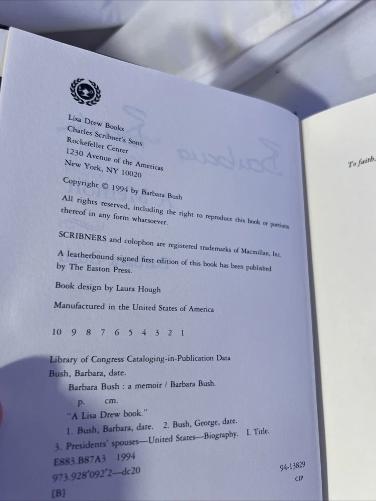 This rare, signed copy of Barbara Bush's memoir is a must-have for any collector or fan of the former First Lady. Published by Scribner in 1994, this hardcover book is in excellent condition and features 512 pages of insight into the life of one of the most influential women in American politics. The book measures 9.6 inches in length, 6.5 inches in width, and 1.8 inches in height, with a weight of 37 ounces. The memoir is written in English and explores topics such as women's rights, general biography, and the lives of presidents and heads of state. The book's genre is biography and autobiography, and it is illustrated by a variety of artists. This first print copy is a valuable addition to any book collection and provides a unique glimpse into the life of Barbara Bush.