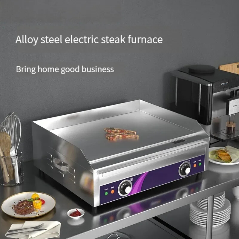 Hand pie machine commercial enamelled teppanyaki teppanyaki squid tofu machine teppanyaki electric grill commercial Temperature control range: 50~300 ° C Net weight of product 37kg Power 2.2+2.2 kW Overall dimension 630x525x250mm Grill plate size 610x405x1 2mm Slag receiving box size 560x90x65mm Gripper plate material: alloy steel
