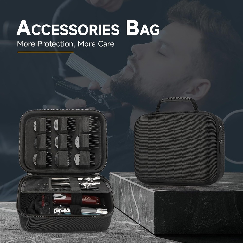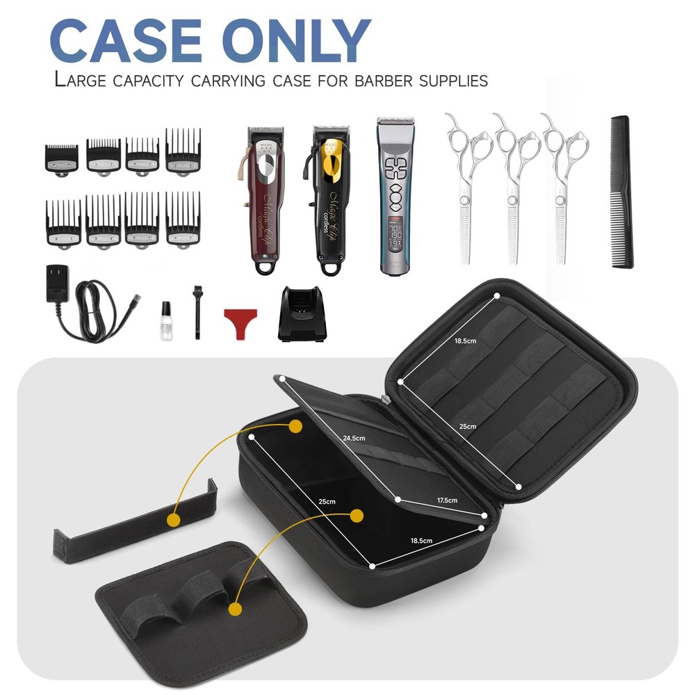 Barber Accessories Bag for Clippers and Supplies, Mens Hair Trimmers Box, Portable Clipper Storage Holder Organizer for Hair Cutting, Guard Grooming Kit and Barbers Supplies (Bag Only) -Black ✃【Material&High Protection】For Barber clippers storage bag is made of durable EVA material, clippers for hair cutting case provides shock-proof, splash-proof, scratch-proof, and dust protection, safeguarding beards from potential damage. Soft interior lining offers added protection to delicate equipment like clippers kits, prolonging their lifespan. Frequent use by professional hairdressers or personal daily use, firm hair bags can reduce replacement frequency and save costs. ✃【Hair Clipper Organizer Excellent Protection】With mesh pocket and dividers, hair cutting kit bag can be used to store guide combs, charging cable, cleaning brushes, blade, oil, manual and other grooming accessories; Case for beard grooming kit not only collects accessories in one place, prevent them colliding and damaging, but also avoids it loss. Smooth and durable double zipper is easy to open and close hair trimmer for men storage, giving you a better use experience. ✃【Easy to Carry 】For Barber bag with a robust handle for comfortable carrying, making it easy to transport to any destination, whether for travel, business, or outdoor adventures. Meanwhile, hair clippers & accessories container also can be put in backpack and suitcase. Hair trimmer for men storage box with smooth zipper ensures seamless opening and closing, enhancing the ease of use and overall user experience. ✃🔥【Multifunctional Use】You can freely decide the usage as you wish like professional salon organizer, personal home storage, travel carrying bag, makeup kits pouch and more. It is a good choice for barber, salon, hair stylist, hairdresser, hairdressing amateur, makeup artist, and travel enthusiast.Size: (10.6 x 7.87 x 3.14 inch ) This bag can hold a variety of cosmetics, skincare products, nail art products, makeup brush set, jewelry, electronic accessories, toiletries, shaving kit, hair cutting kits and so on. 💕【A Unique and Thoughtful Gift 】Clipper organizer for barber not only is used by yourself, but also is gift choice for father, boyfriend and male friends. Clippers and trimmers set storage bag is suitable for Father's Day, Valentine's Day, Christmas and other festivals. If you are not satisfied with the product, please feel free to contact us, and we will solve it on time.