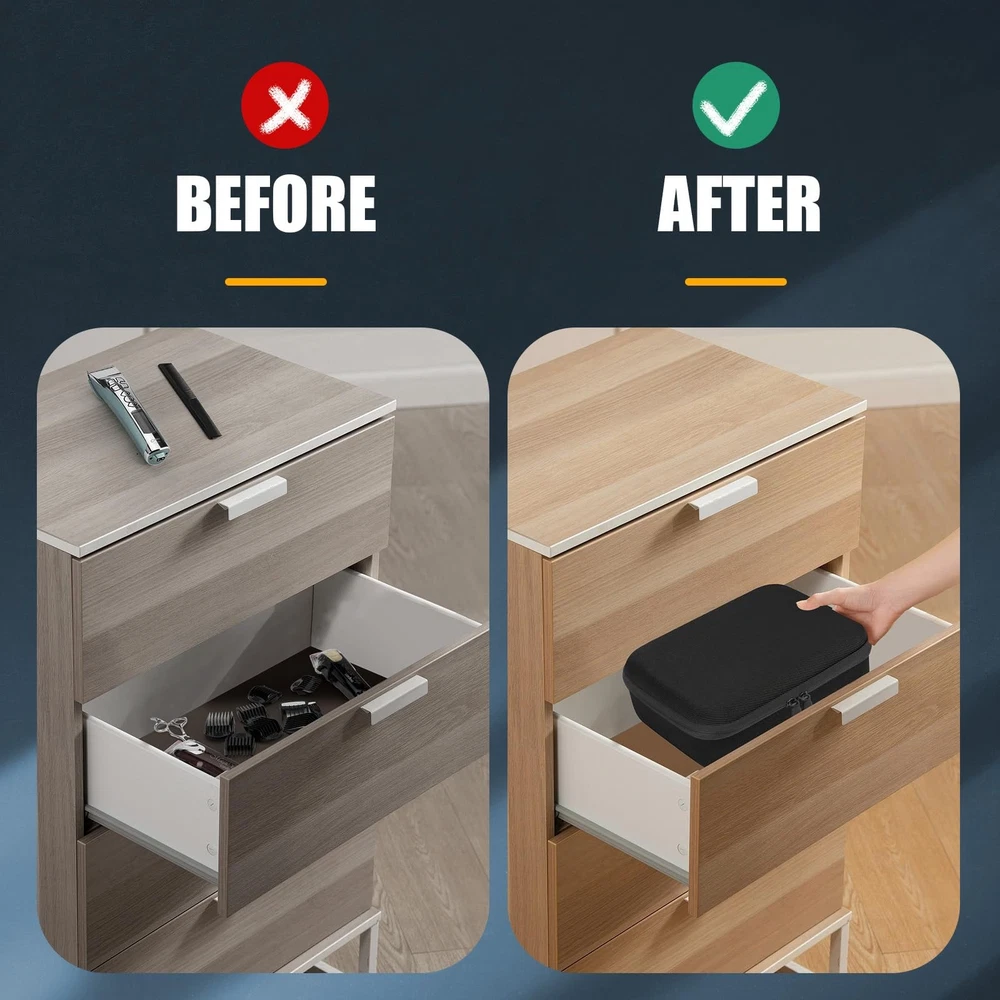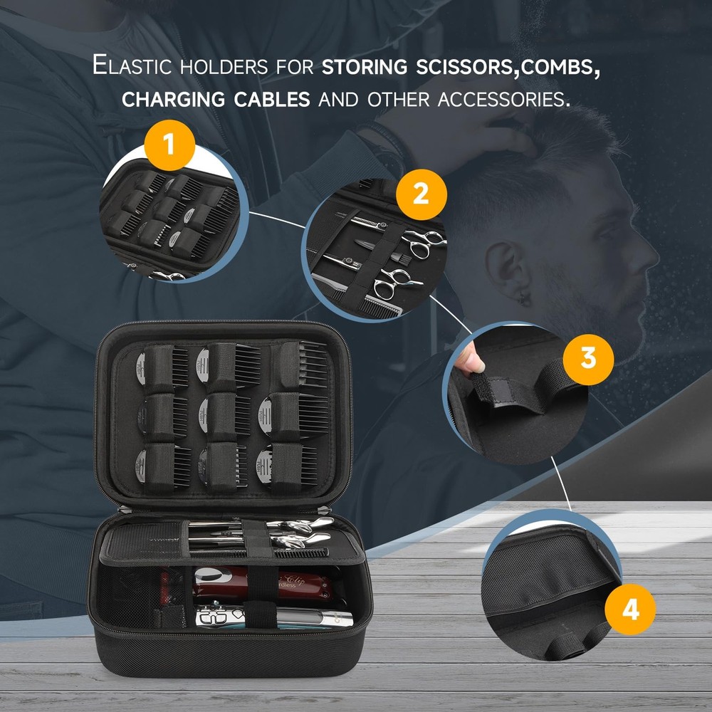This barber case is a game-changer for keeping clippers and grooming tools organized and safe! The tough EVA material is shockproof and water-resistant, while the soft interior lining prevents scratches. It’s compact yet fits everything—perfect for barbers on the go or at home. The sleek black design looks professional, and the sturdy zipper ensures nothing falls out. A must-have for anyone serious about their grooming tools!