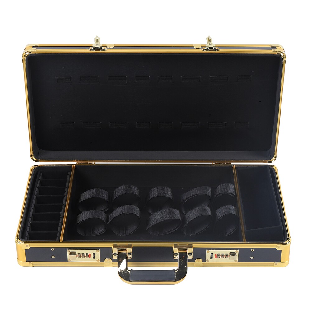 This barber travel case is a game-changer! The sturdy aluminum build with reinforced steel corners keeps all my tools safe and organized. The sleek black finish with gold trim looks professional, and the secure 3-digit lock gives me peace of mind when traveling. Perfect for clippers, scissors, combs, and more—highly recommend for any stylist on the go!