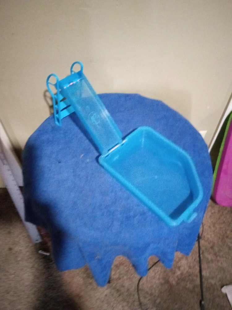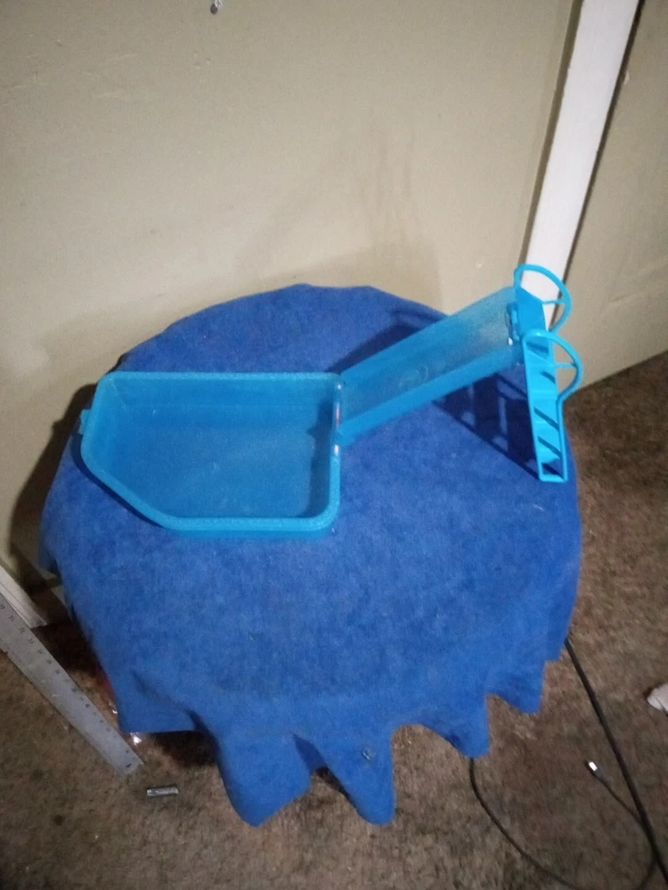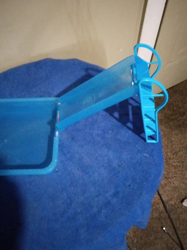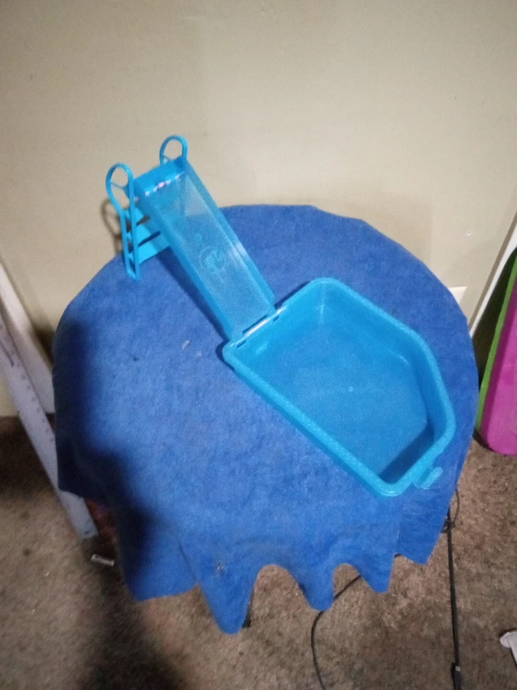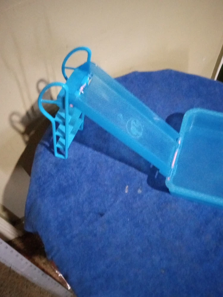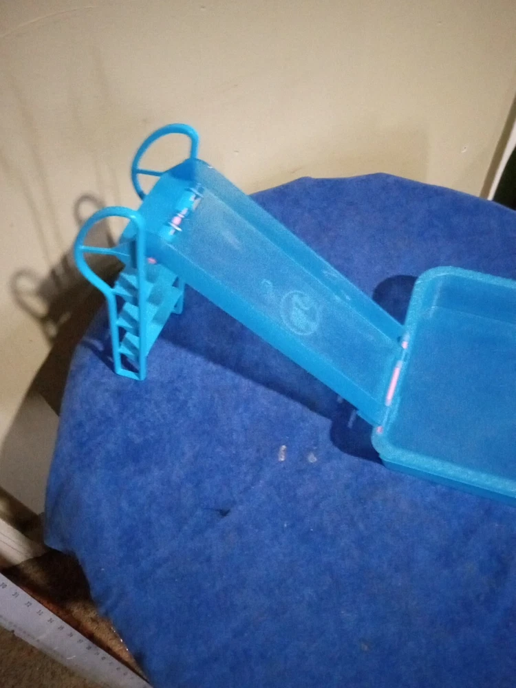 The Barbie 2016 Dream Camper RV Replacement Part is a vintage blue folding pool with a slide ladder designed for Barbie fashion dolls. It is an original Mattel product from the Barbie franchise, compatible with 12-inch dolls, and manufactured in the 2010-2019 time period. This set includes a pool and slide, perfect for imaginative play with Barbie dolls. T90
