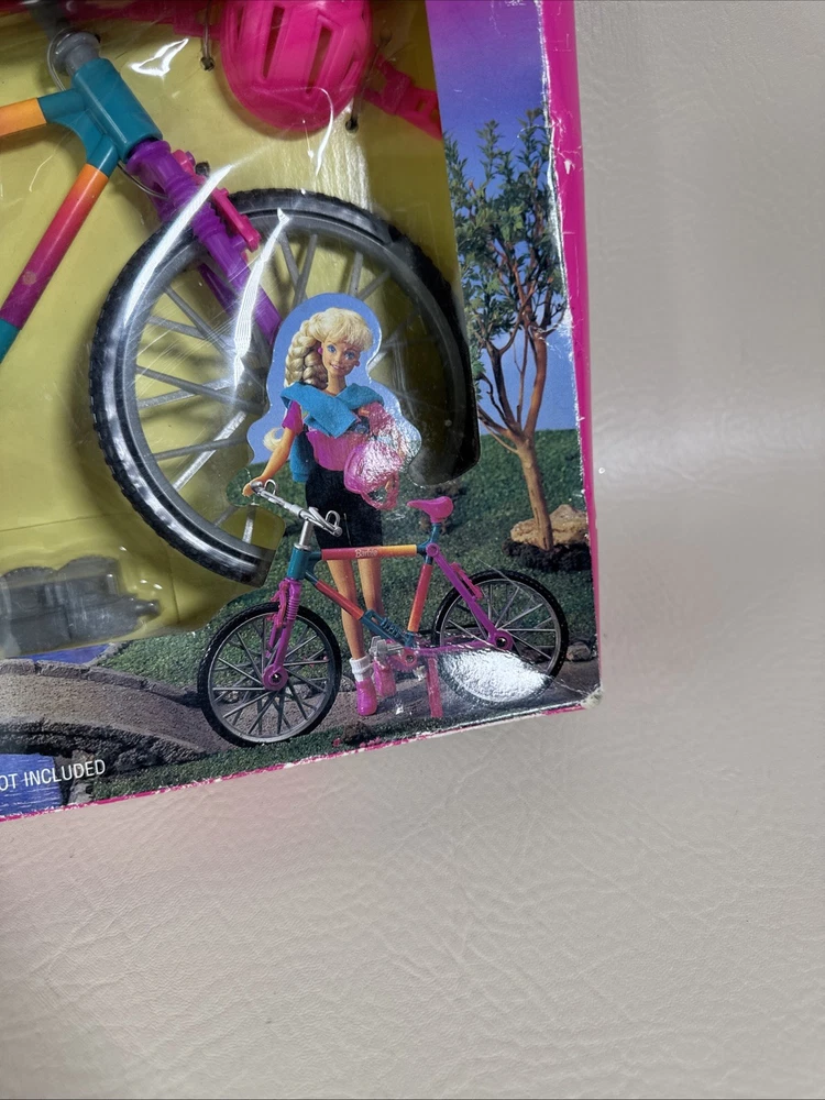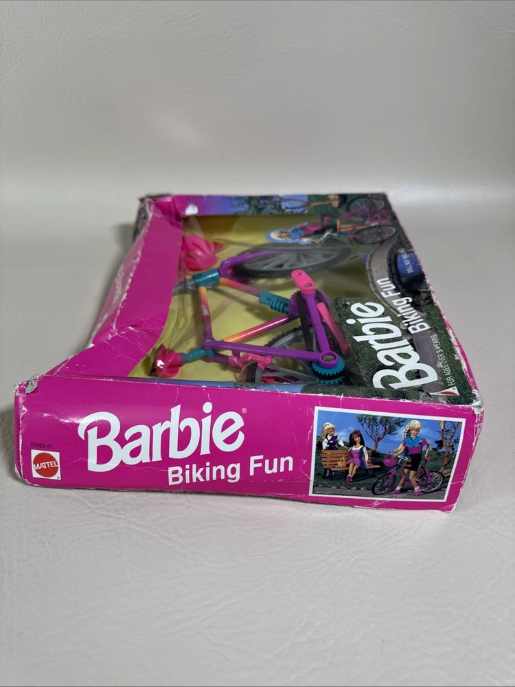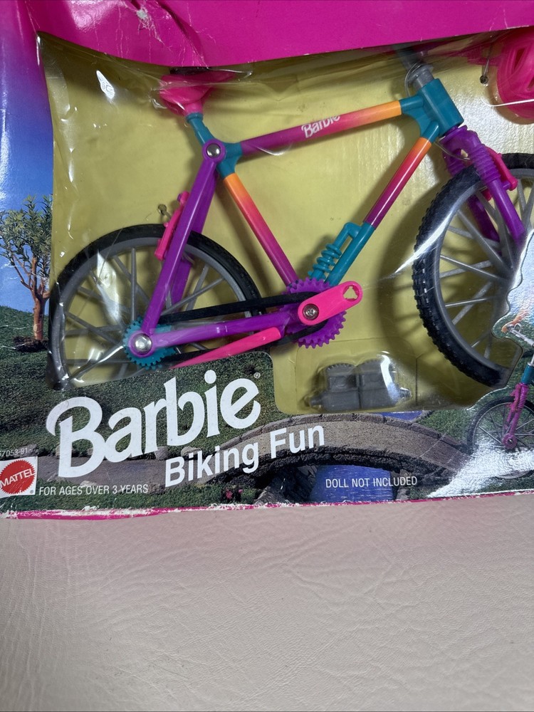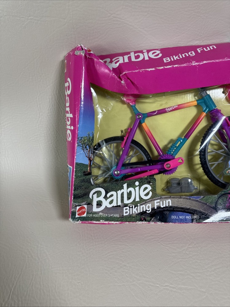 The Barbie Biking Fun Bicycle & Helmet 1995 Mattel 67053-91 is a vintage doll accessory from Mattel that includes a bicycle and helmet designed for Barbie dolls. This 1995 release captures the adventurous spirit of Barbie and allows her to take a ride on a cute and colorful bicycle. Perfect for collectors or for adding a touch of nostalgia to any Barbie enthusiast's collection, this set is a charming piece of Barbie memorabilia. Pre-owned condition. Never been used or removed from original box. Box has damages. The bike has excellent condition without any damages. Set doesn’t include the doll. Bike only with accessories. Please check the pictures carefully as part of the description. Feel free to ask questions if you need more information before you buy it. Thank you for your interest G-5