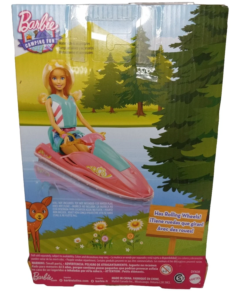 Get ready for some fun in the sun with the Barbie Camping Fun Jet Ski Set! This amazing toy set includes a jet ski vehicle, a life vest, a water bottle, and a pair of glasses, all designed for the fashionable Barbie doll. The set is perfect for children who love the outdoors and enjoy imaginative play. Featuring a multicolor design, this original Mattel toy is gender-neutral and made of durable plastic materials. The Barbie doll type is a fashion doll, and the set is suitable for children aged 3 years and above. This toy set is a must-have for any Barbie collector or fan, and is sure to provide hours of outdoor fun.